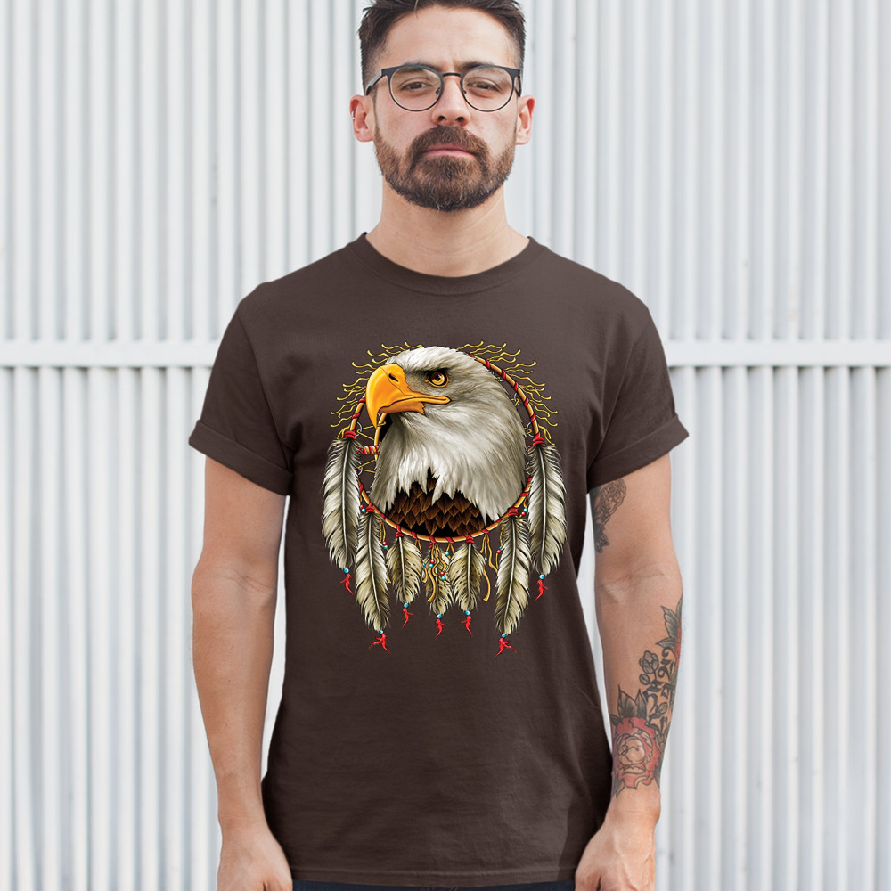 BALD EAGLE DREAMCATCHER t-shirt indigenous native american heritage men's tee brown