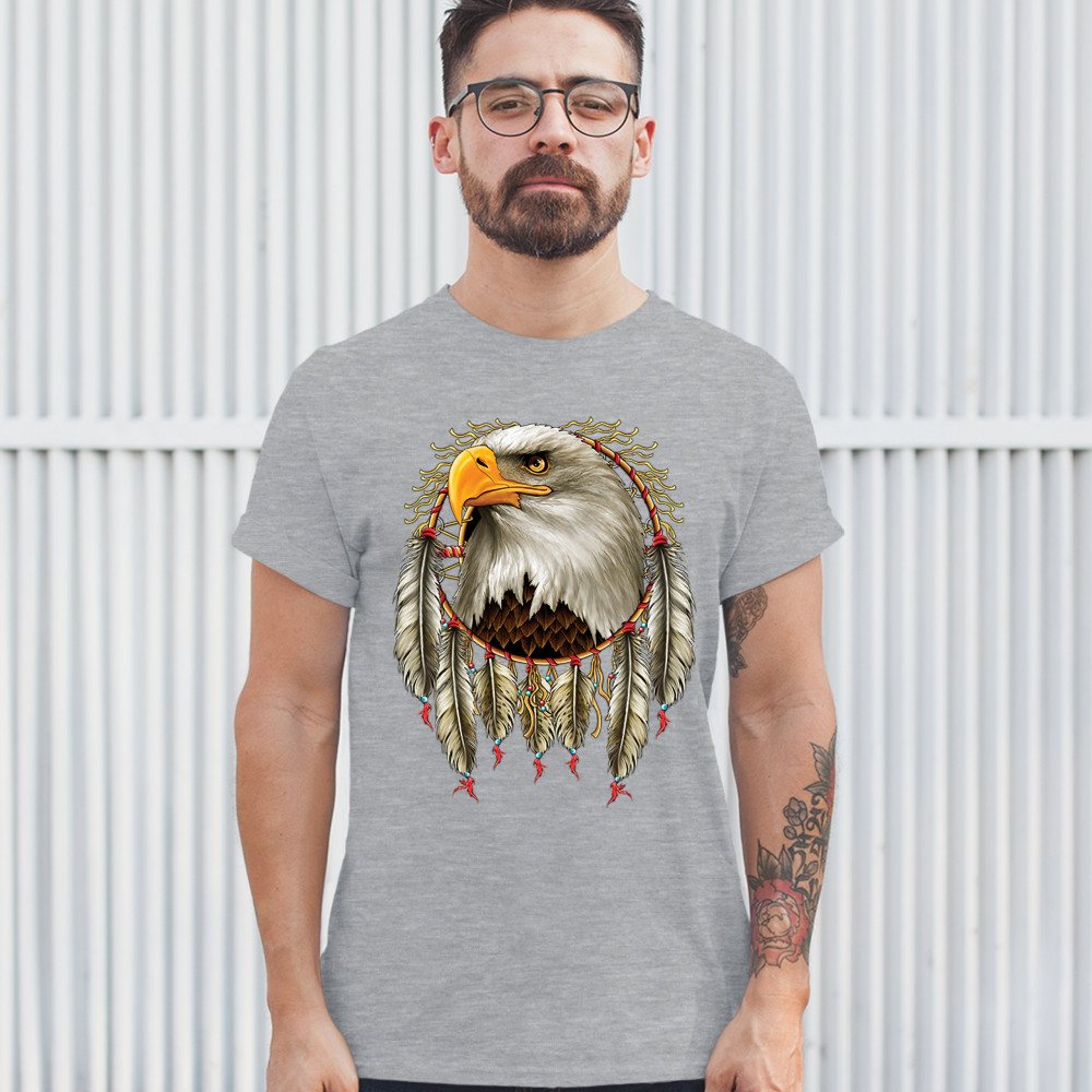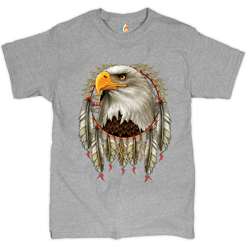 BALD EAGLE DREAMCATCHER t-shirt indigenous native american heritage men's tee gray