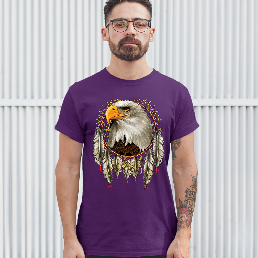 BALD EAGLE DREAMCATCHER t-shirt indigenous native american heritage men's tee purple