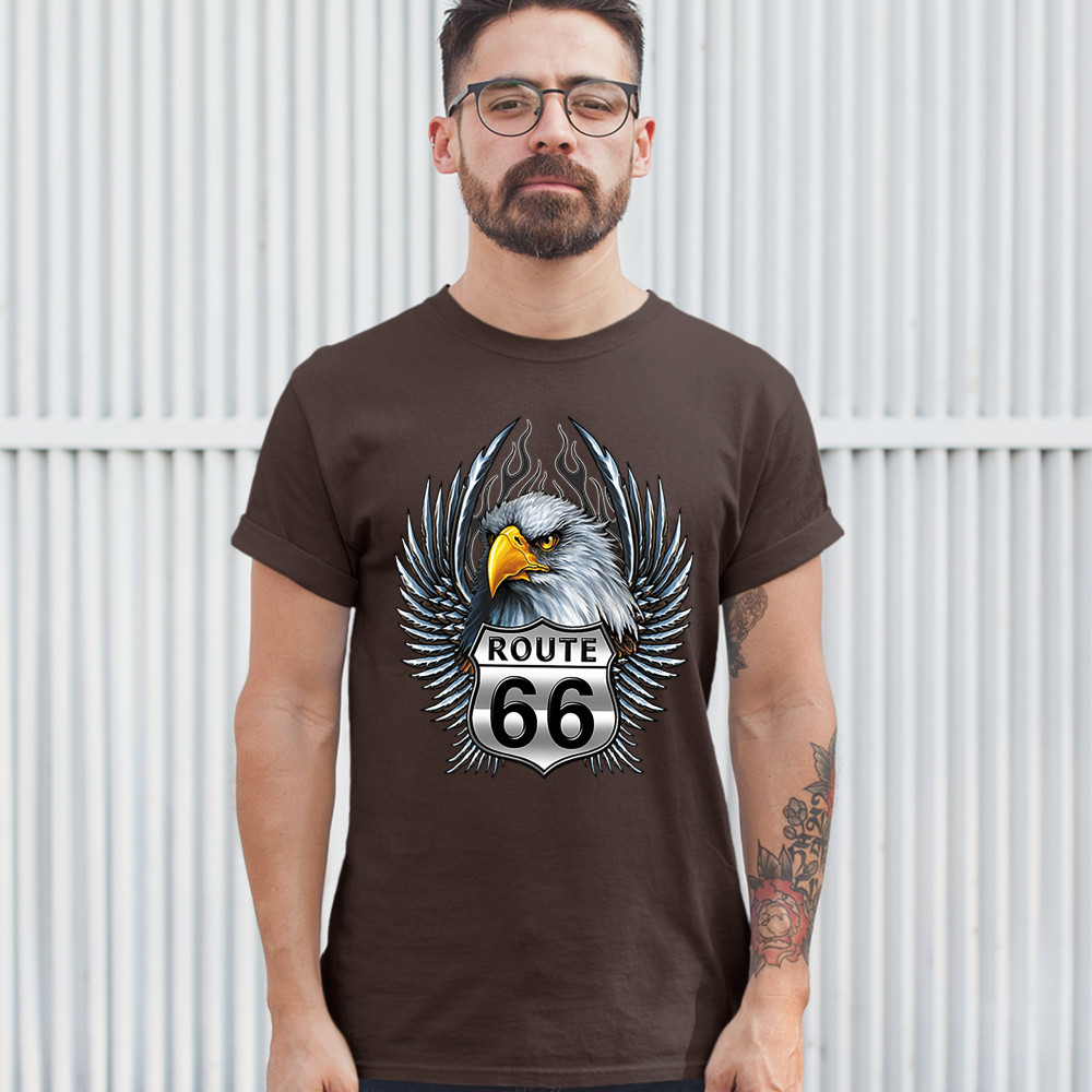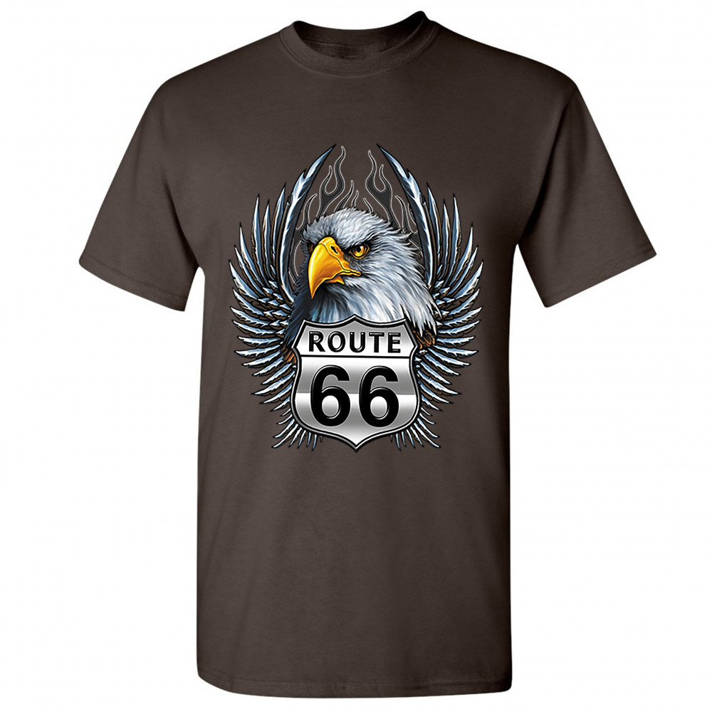 BALD EAGLE ROUTE 66 ROAD SIGN t-shirt live to ride born to be wild men's tee brown