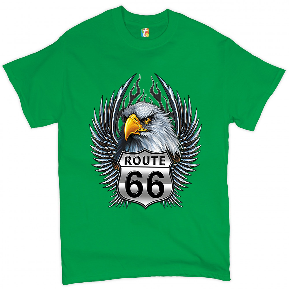 BALD EAGLE ROUTE 66 ROAD SIGN t-shirt live to ride born to be wild men's tee green