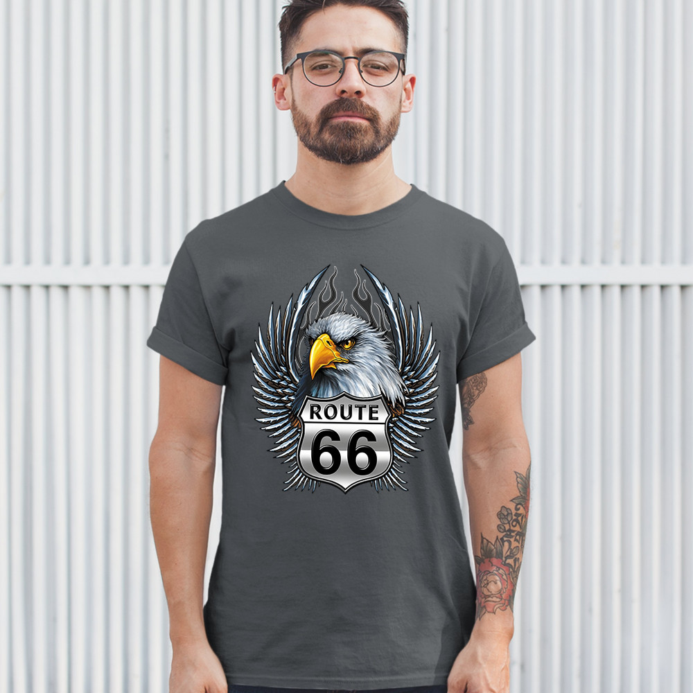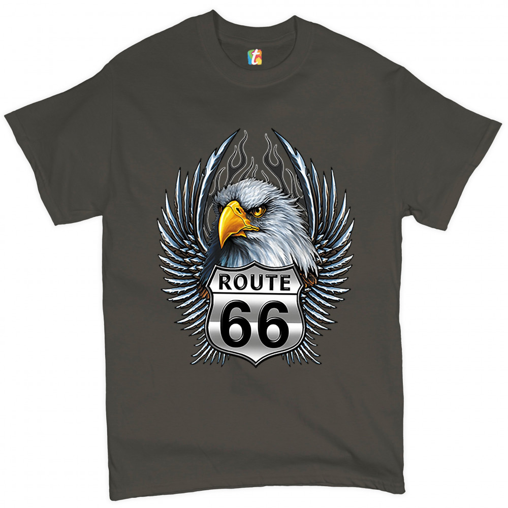 BALD EAGLE ROUTE 66 ROAD SIGN t-shirt live to ride born to be wild men's tee charcoal