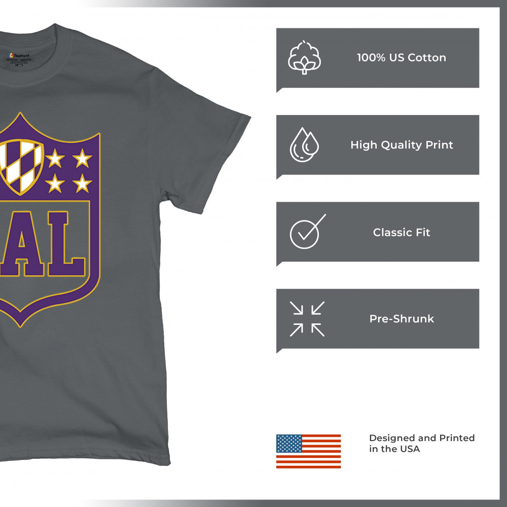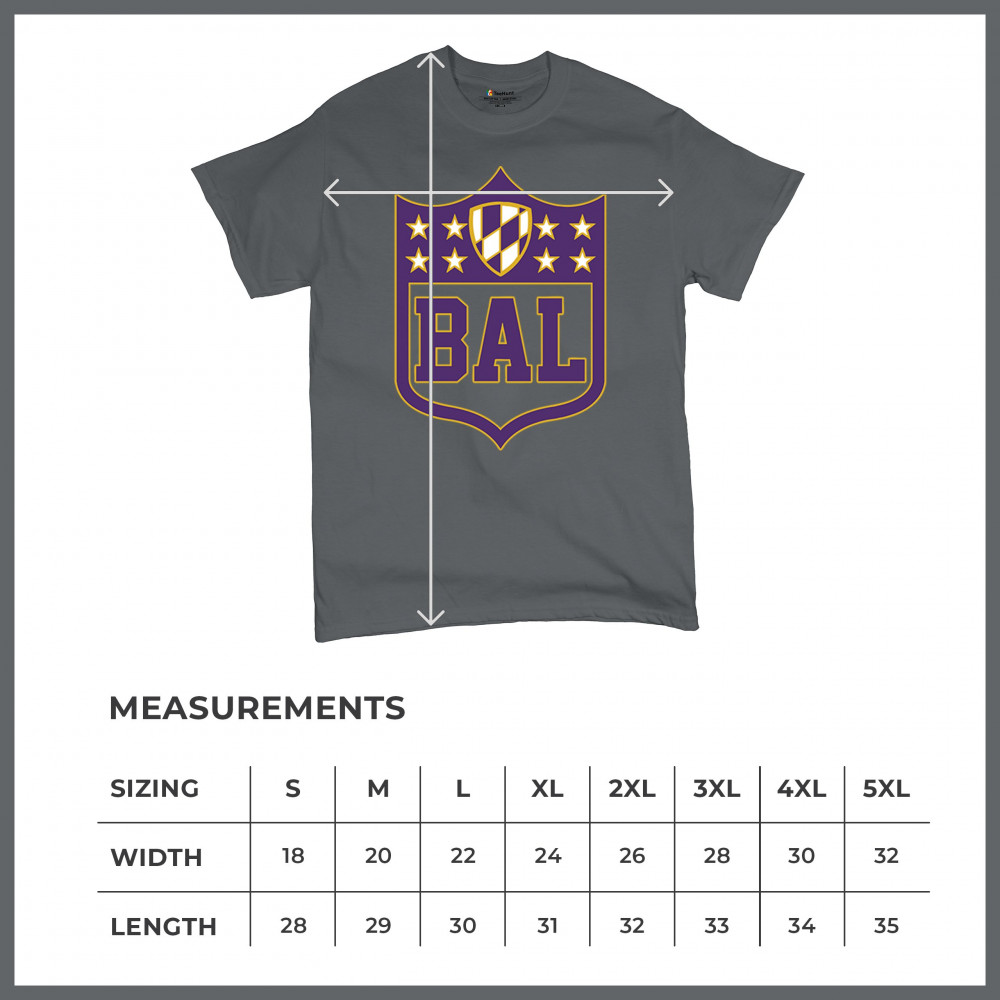 Celebrate your Baltimore pride with this bold BAL shield design. Perfect for football season, this Baltimore athletic shirt blends retro Baltimore football shirt style with collegiate energy. From tailgate party Baltimore tees to vintage BAL sports shirts, it’s built for fans who thrive on touchdown vibes, football culture, and Baltimore city pride. A shield logo Baltimore shirt every fan will love.