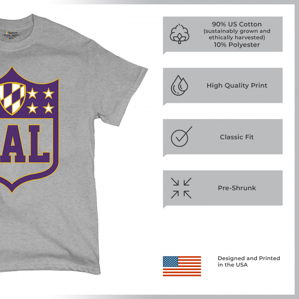 Celebrate your Baltimore pride with this bold BAL shield design. Perfect for football season, this Baltimore athletic shirt blends retro Baltimore football shirt style with collegiate energy. From tailgate party Baltimore tees to vintage BAL sports shirts, it’s built for fans who thrive on touchdown vibes, football culture, and Baltimore city pride. A shield logo Baltimore shirt every fan will love.