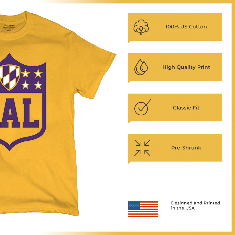 Celebrate your Baltimore pride with this bold BAL shield design. Perfect for football season, this Baltimore athletic shirt blends retro Baltimore football shirt style with collegiate energy. From tailgate party Baltimore tees to vintage BAL sports shirts, it’s built for fans who thrive on touchdown vibes, football culture, and Baltimore city pride. A shield logo Baltimore shirt every fan will love.