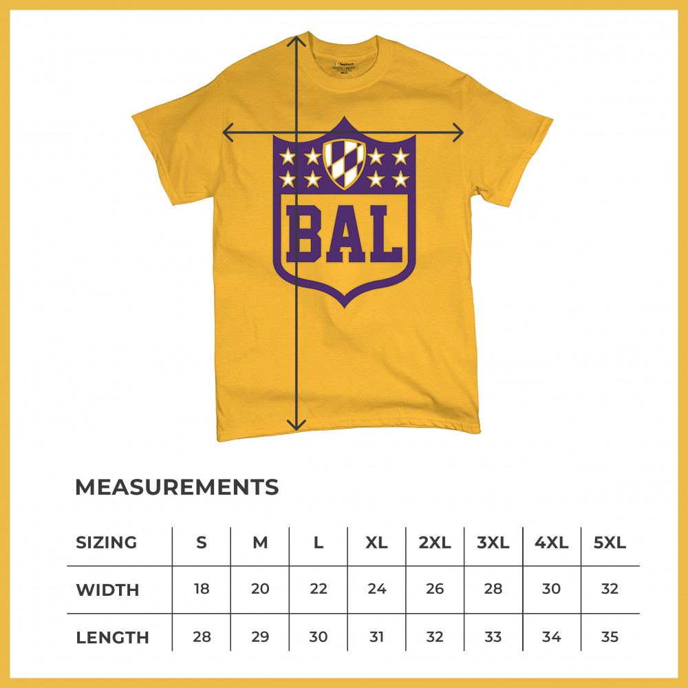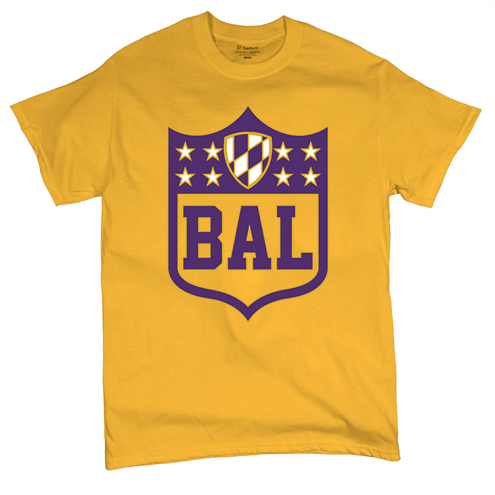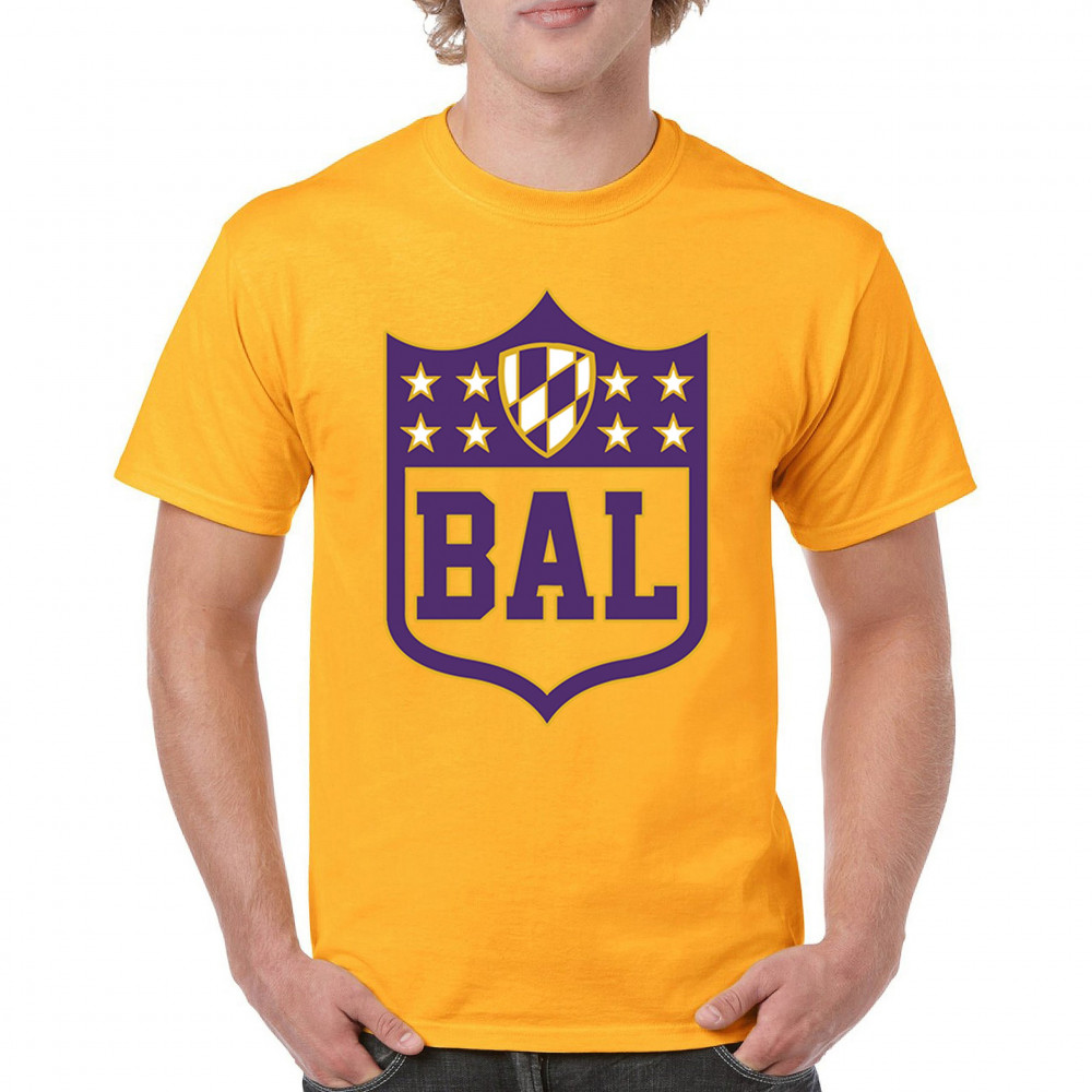 Bold BAL shield design for Baltimore football fans. Vintage sports shirt, collegiate style, and perfect Game Day Baltimore tee.
