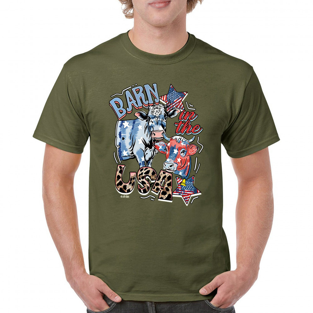 Celebrate American farming and patriotic spirit with our playful "Barn in the USA" design, a blend of whimsy and pride.