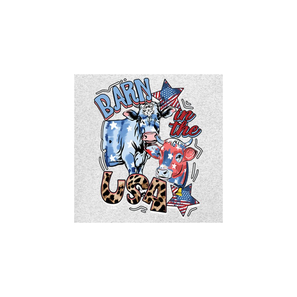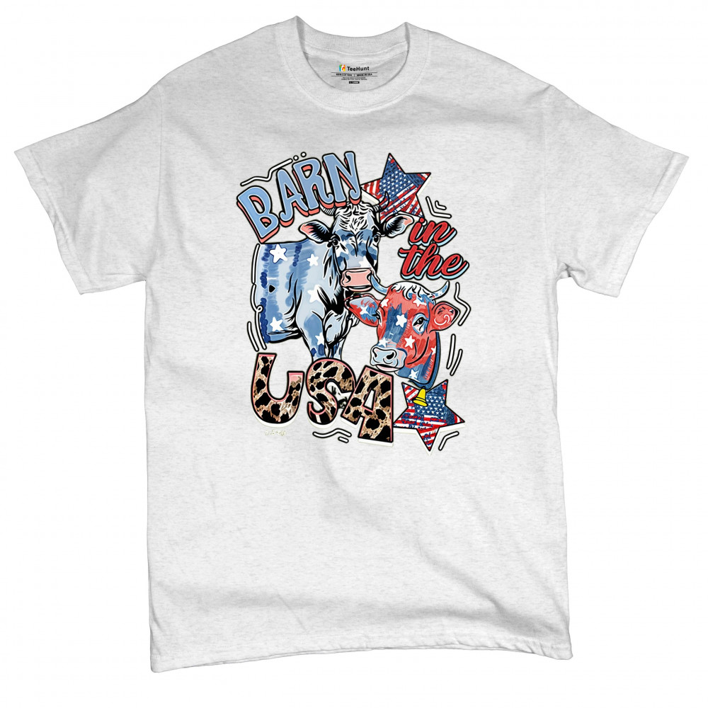 Celebrate American farming and patriotic spirit with our playful "Barn in the USA" design, a blend of whimsy and pride.