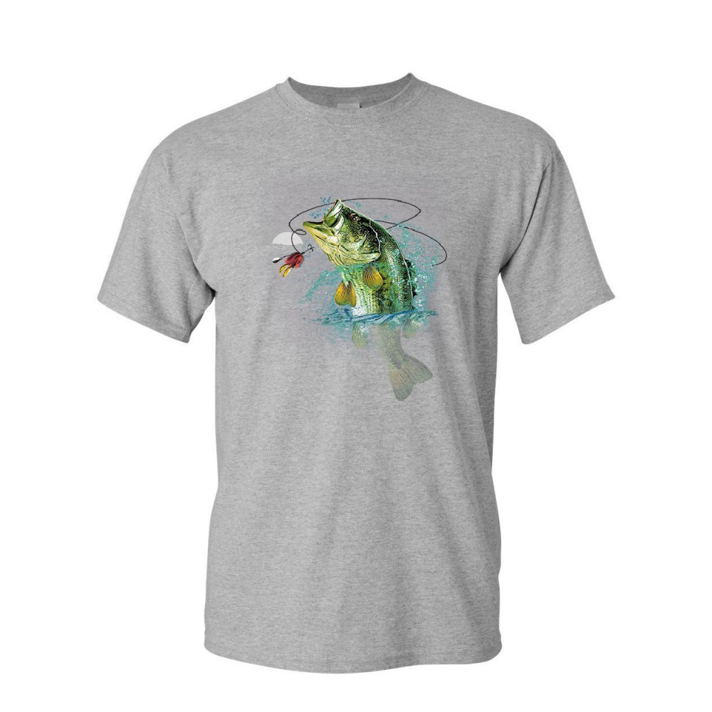 BASS FISHING t-shirt fisherman camping hobby angler lake river mens tee shirt sport gray