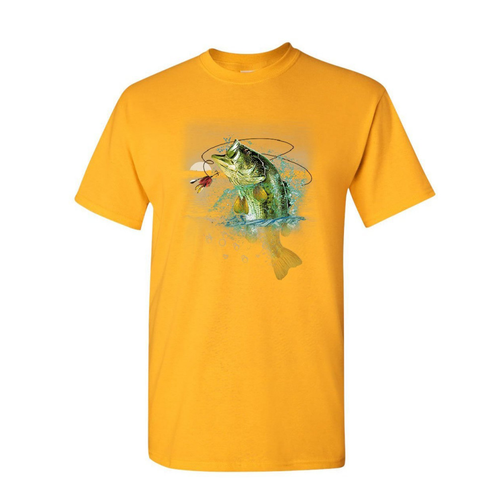 BASS FISHING t-shirt fisherman camping hobby angler lake river mens tee shirt yellow