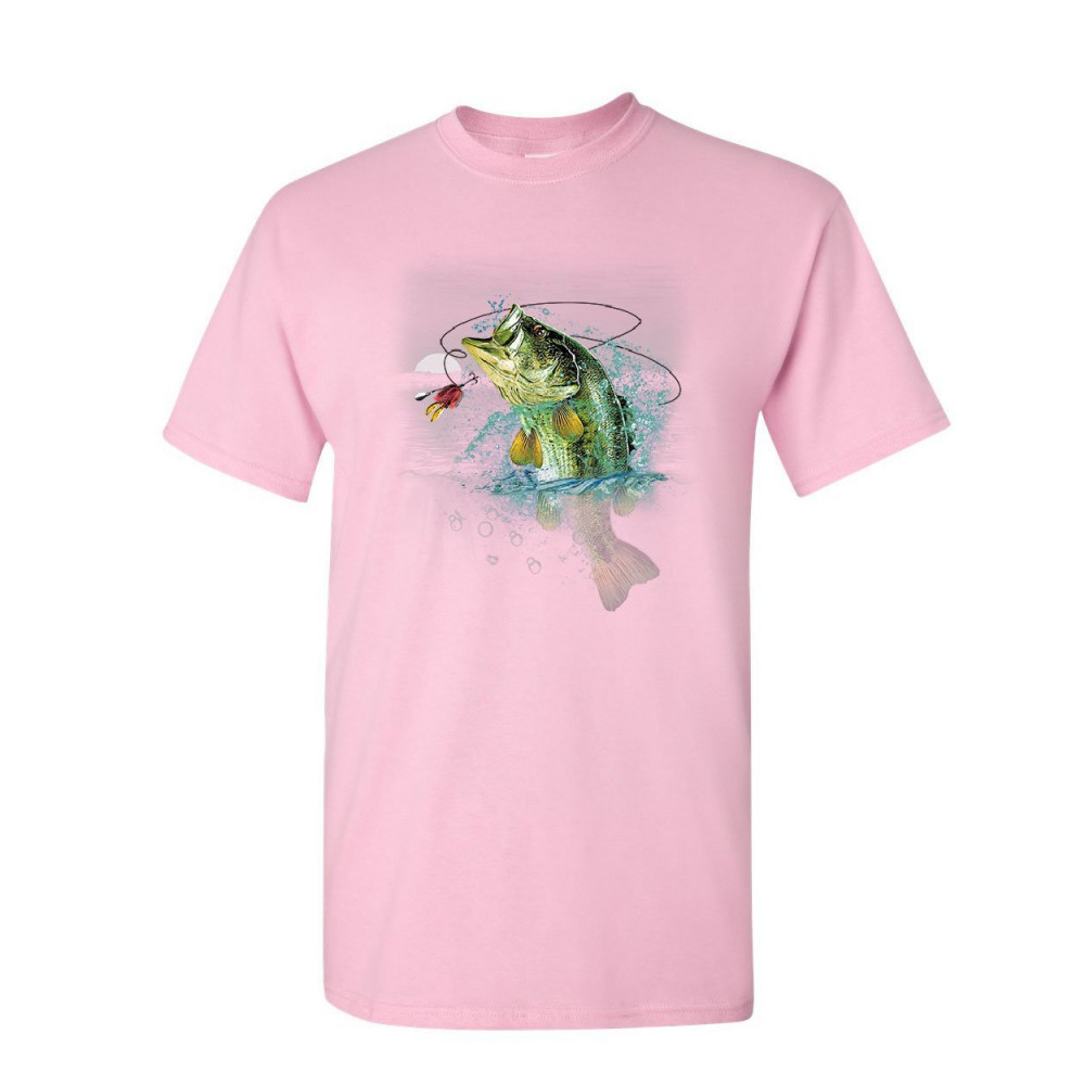 BASS FISHING t-shirt fisherman camping hobby angler lake river mens tee shirt light pink