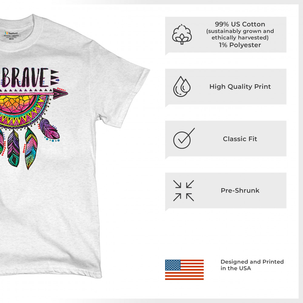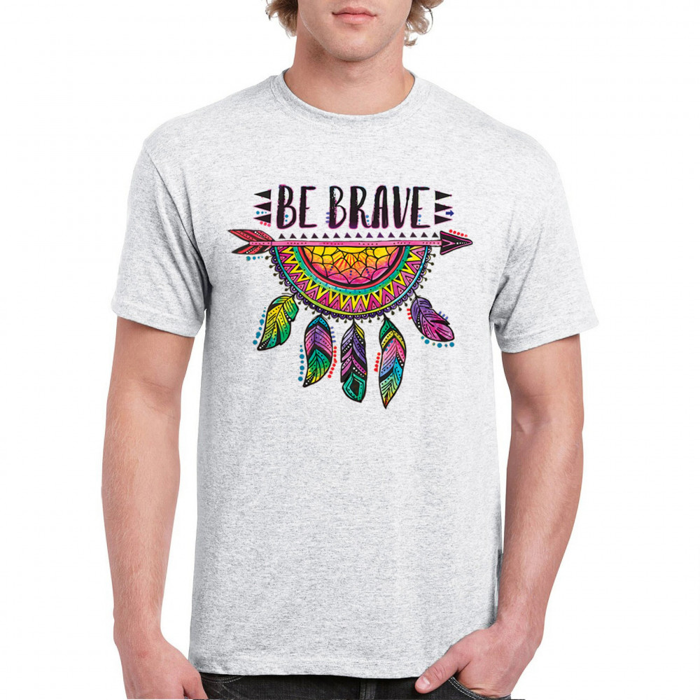 BE BRAVE DREAM CATCHER t-shirt dean russo motivation feather men's tee ash gray