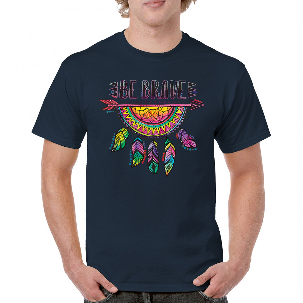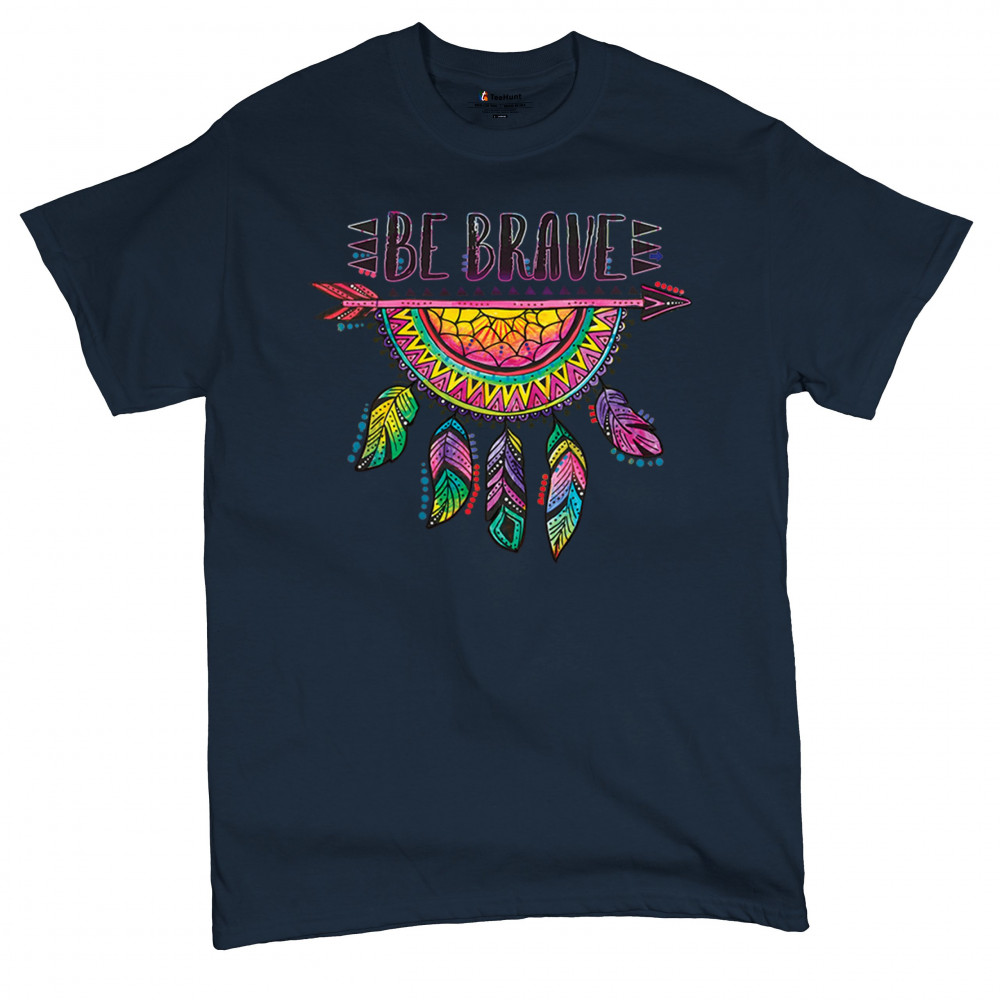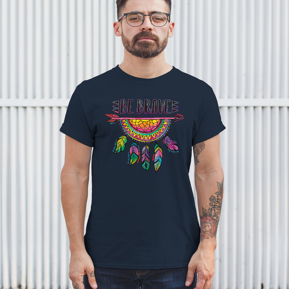 BE BRAVE DREAM CATCHER t-shirt dean russo motivation feather men's tee navy blue