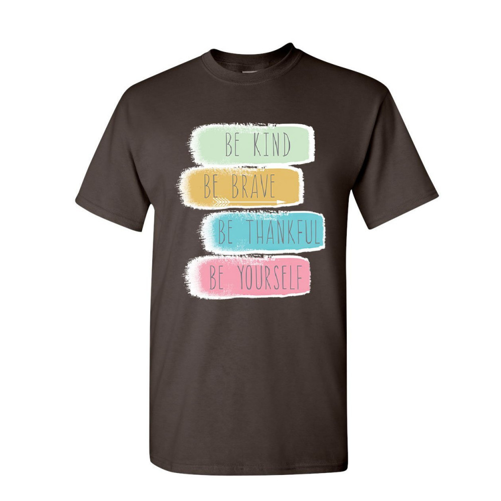 BE YOURSELF be kind brave thankful t-shirt motivation positive mens tee shirt brown