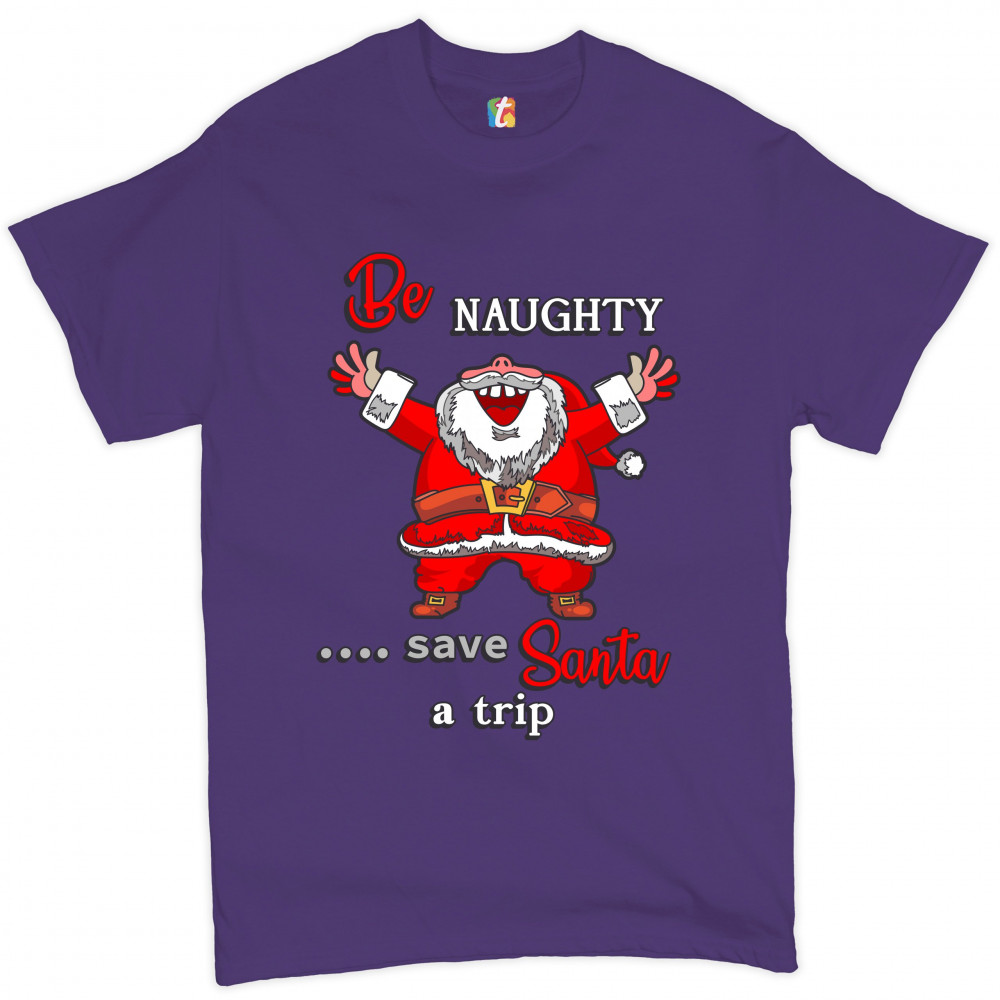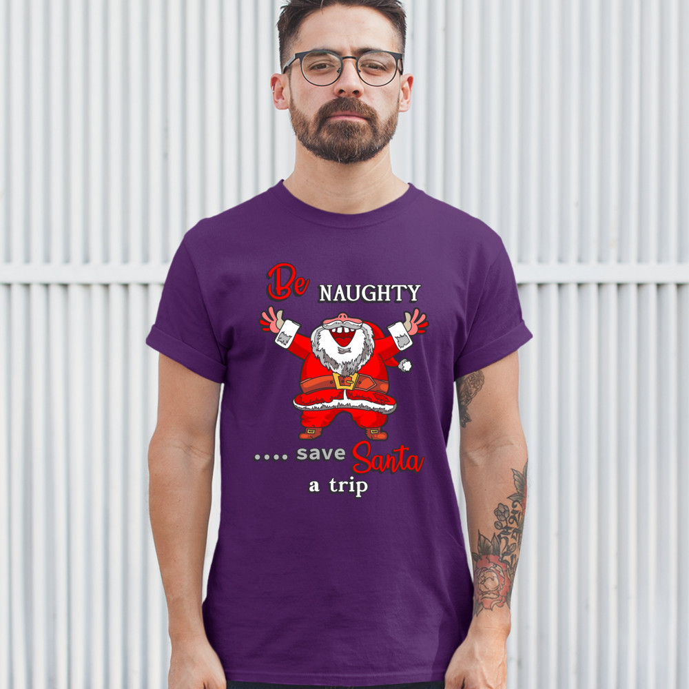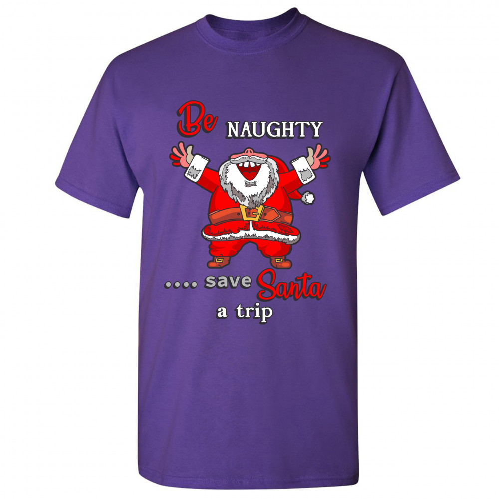 BE NAUGHTY SAVE SANTA A TRIP t-shirt holiday spirit christmas eve men's tee purple