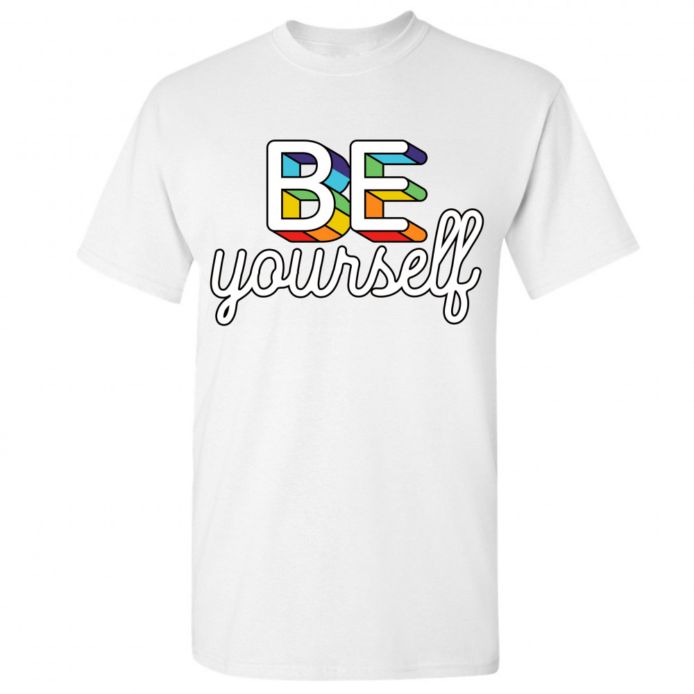 BE YOURSELF t-shirt lgbt support gay pride rainbow good vibes ally men's tee white
