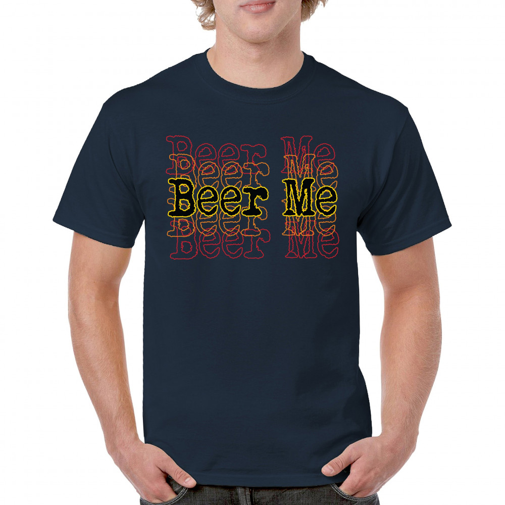 “Beer Me†brings sarcastic drinking humor to life with bold distressed lettering and a grunge-style retro background. Perfect for bar nights, tailgates, beer festivals, or casual party wear. A top pick for beer fans with a loud sense of humor and love for brews.