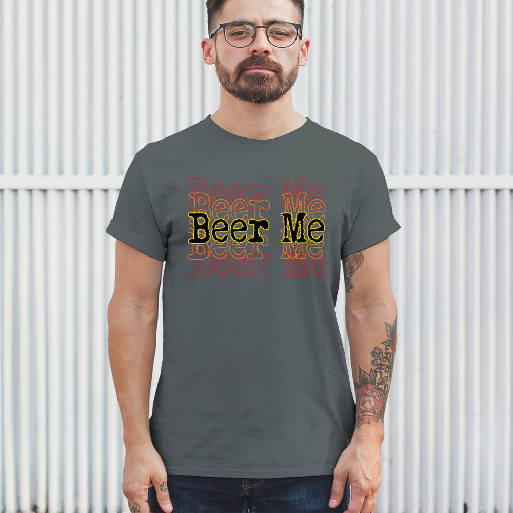 “Beer Me†brings sarcastic drinking humor to life with bold distressed lettering and a grunge-style retro background. Perfect for bar nights, tailgates, beer festivals, or casual party wear. A top pick for beer fans with a loud sense of humor and love for brews.