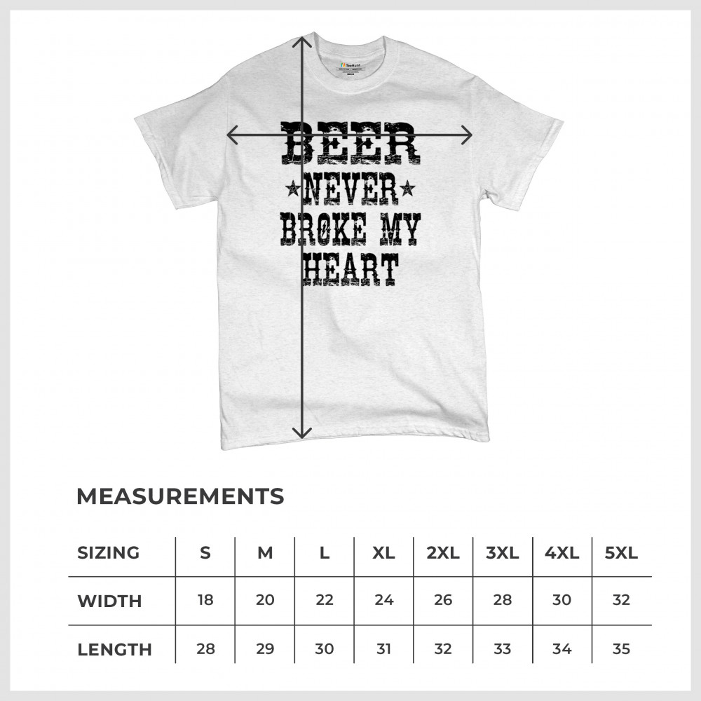 Beer Never Broke My Heart brings funny, great value style for beer lovers—perfect for bar crawls, backyard BBQs, and dad gifts.