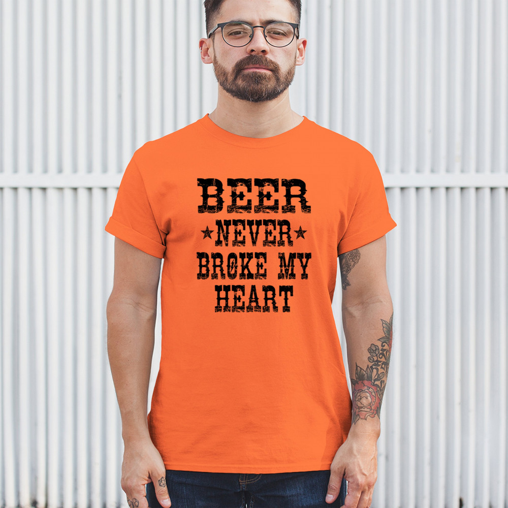 Beer Never Broke My Heart brings funny, great value style for beer lovers—perfect for bar crawls, backyard BBQs, and dad gifts.