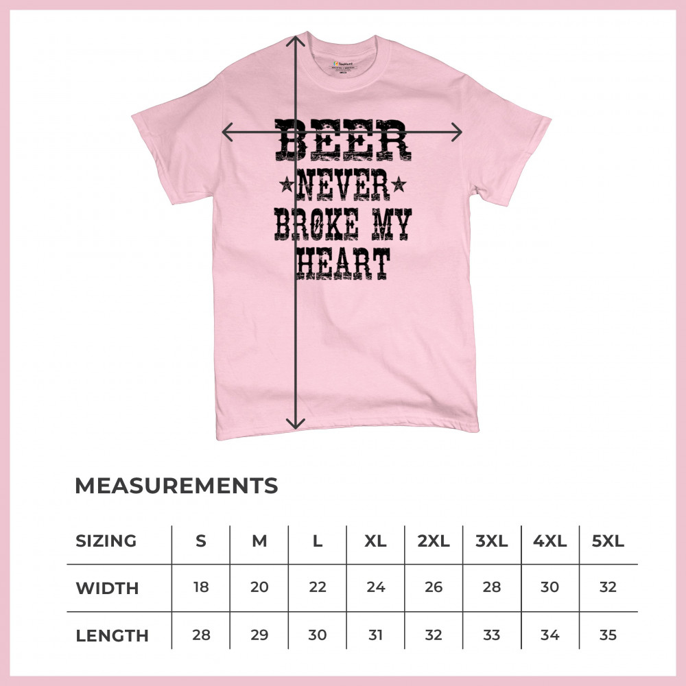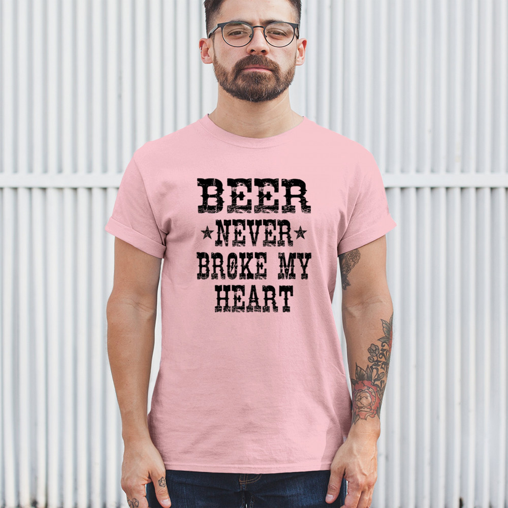 Beer Never Broke My Heart brings funny, great value style for beer lovers—perfect for bar crawls, backyard BBQs, and dad gifts.