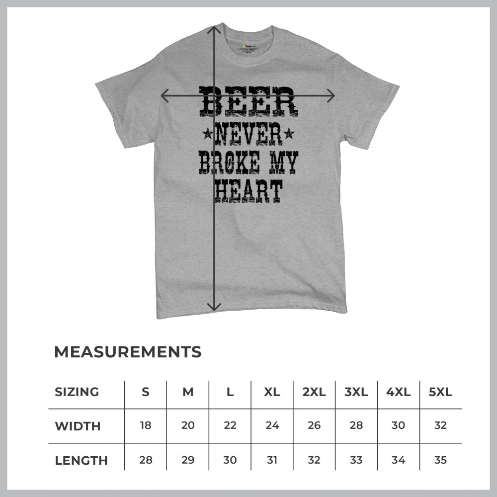 Beer Never Broke My Heart brings funny, great value style for beer lovers—perfect for bar crawls, backyard BBQs, and dad gifts.