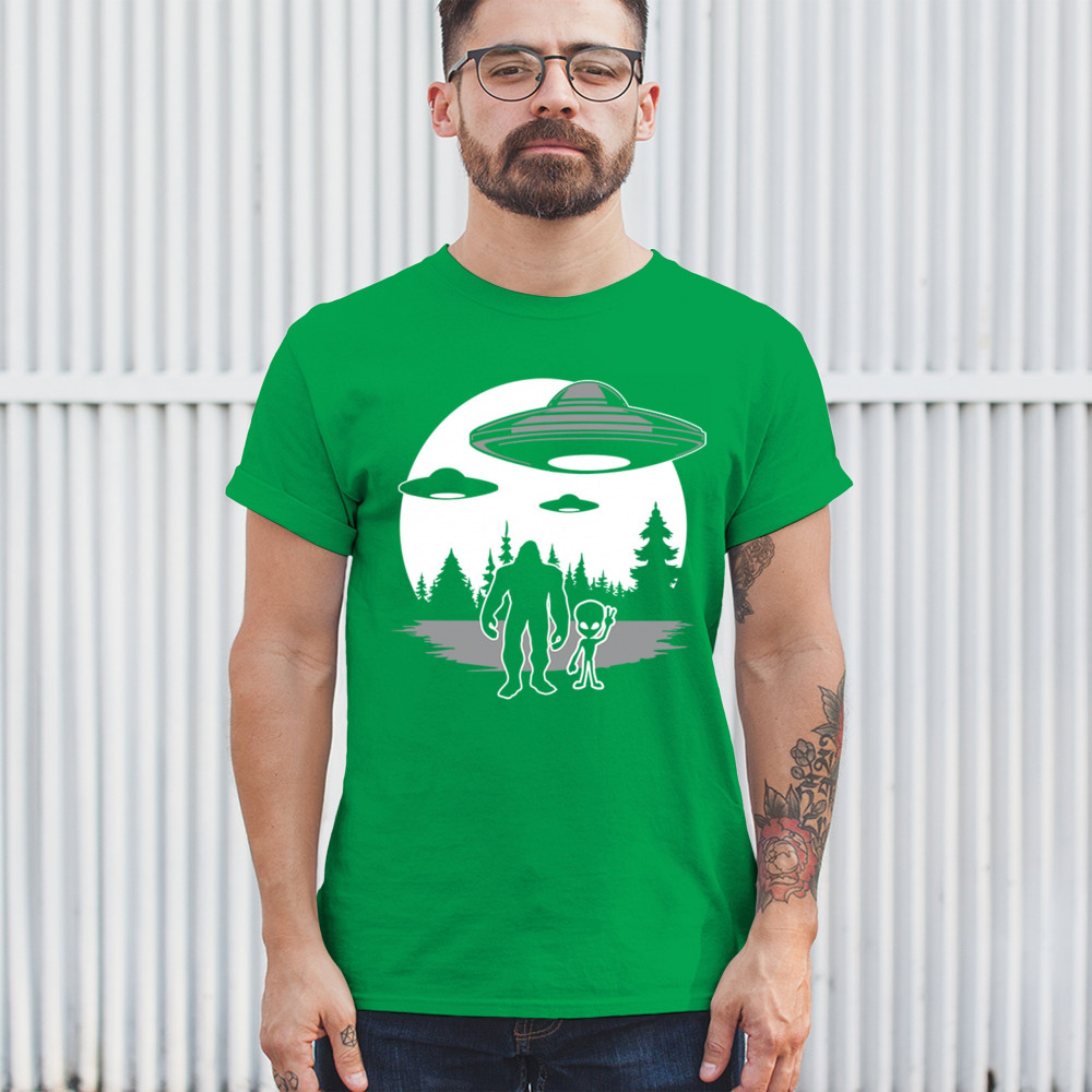 Explore the universe's mysteries with our design where aliens, Big Foot, and Area 51 lore merge for the ultimate nerd homage.