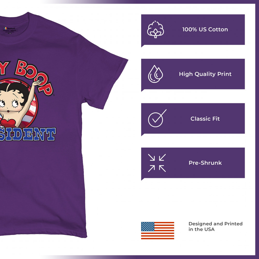 Show your playful side with the Betty Boop for President shirt! Perfect for cartoon lovers and fans of unique, humorous designs. Ideal gift for all occasions.
