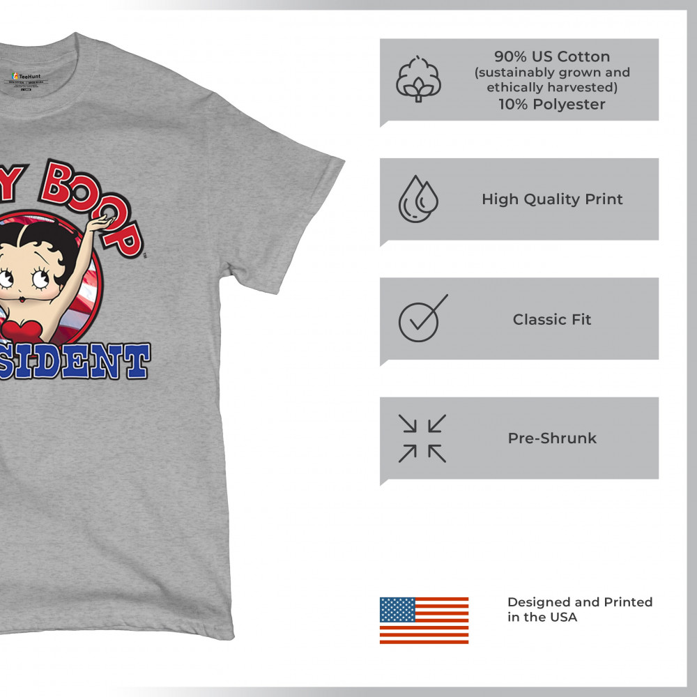 Show your playful side with the Betty Boop for President shirt! Perfect for cartoon lovers and fans of unique, humorous designs. Ideal gift for all occasions.