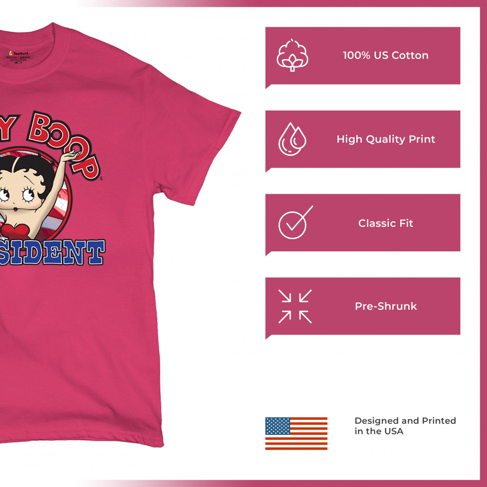 Show your playful side with the Betty Boop for President shirt! Perfect for cartoon lovers and fans of unique, humorous designs. Ideal gift for all occasions.