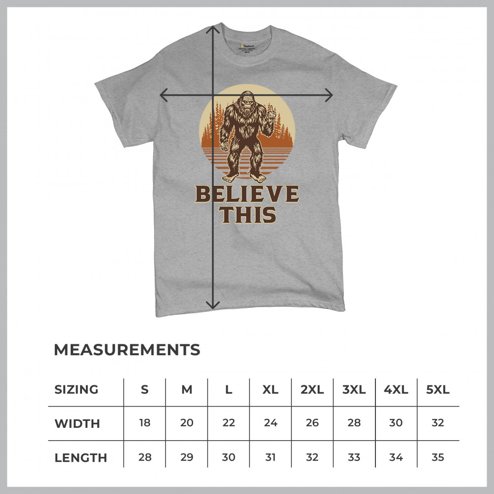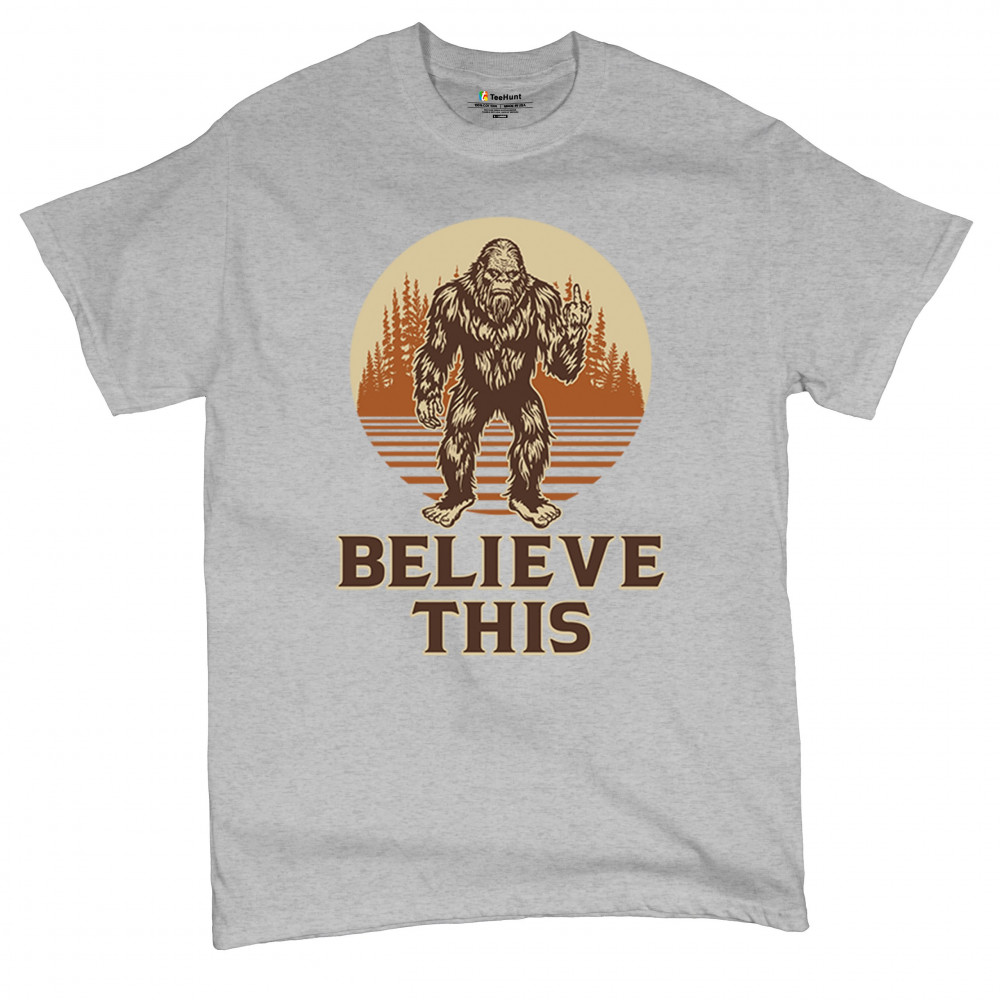 The Believe This Bigfoot design blends cryptid folklore with blunt attitude—because sometimes you just don’t care who believes. Featuring Bigfoot flipping the bird against a rustic tree line, it’s perfect for campers, rebels, and fans of sarcastic forest humor. Ideal for hikes, festivals, and off-grid living.