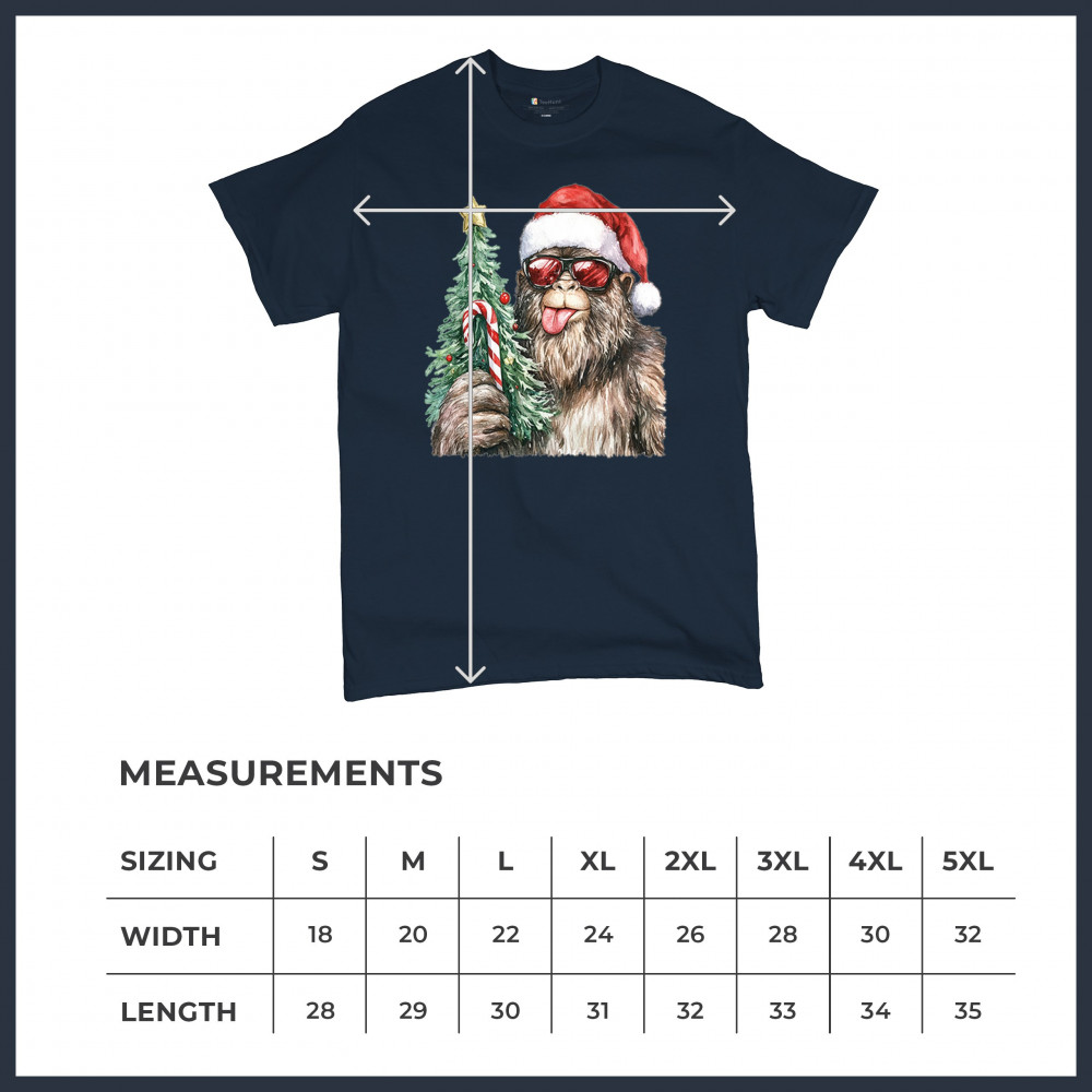 Bring holiday cheer with our Bigfoot Christmas Santa shirt, a festive design mixing Bigfoot legend with Christmas humor. Featuring a Santa hat, Xmas tree, and candy cane, this holiday humor tee is perfect for anyone who loves funny Christmas shirts, festive holiday tees, or quirky holiday tree shirts. A must-have for believers in Sasquatch and fans of holiday fun.