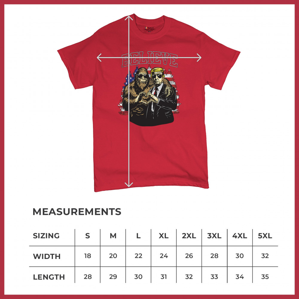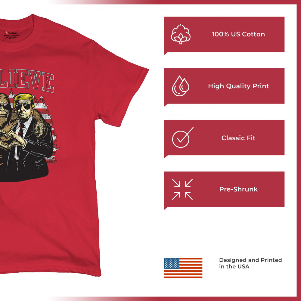 Show your belief with Trump and Bigfoot! Celebrate America First, the Red Wave, and conservative pride with this unique and patriotic design.