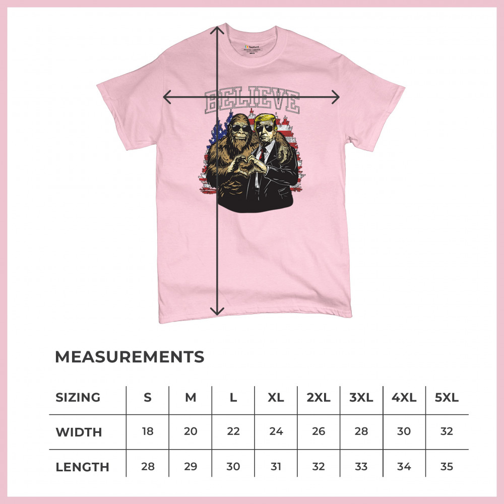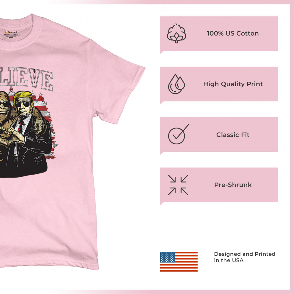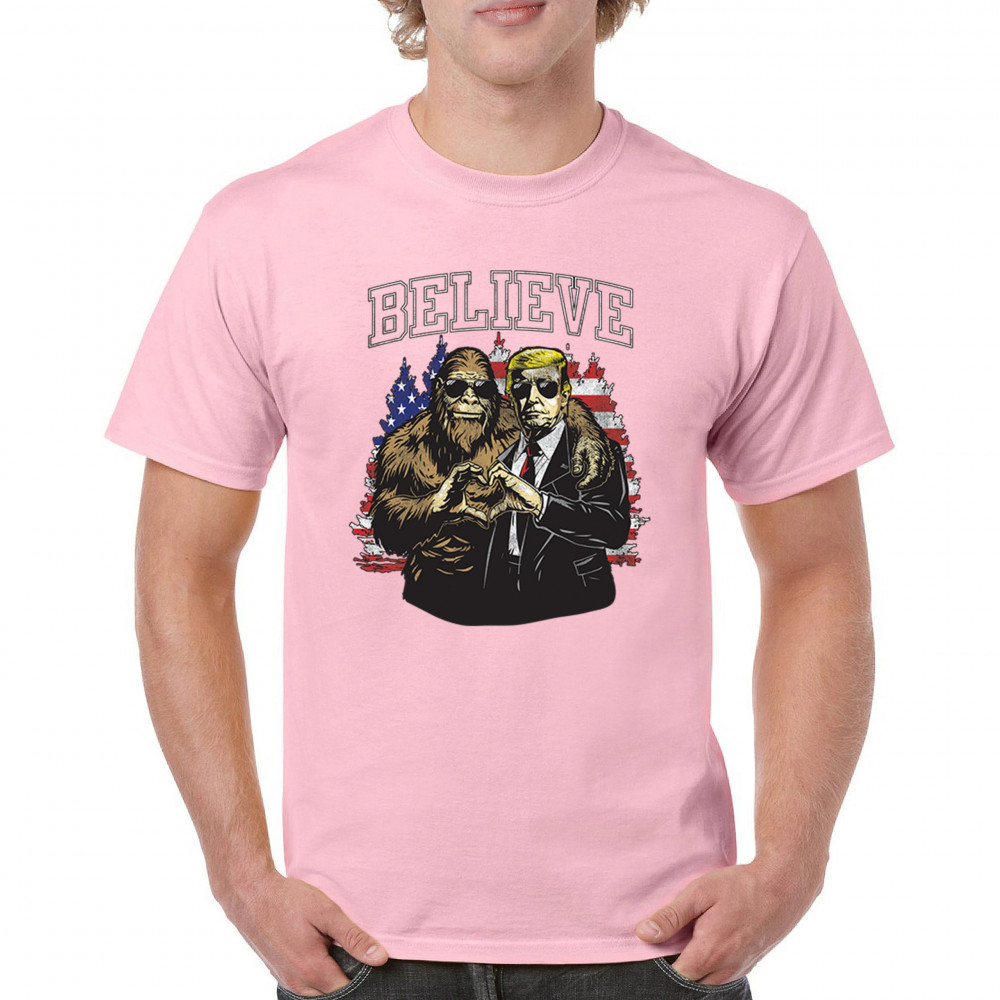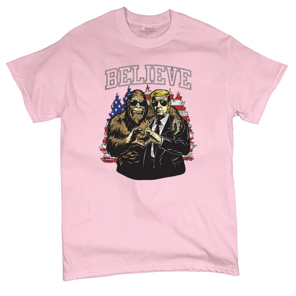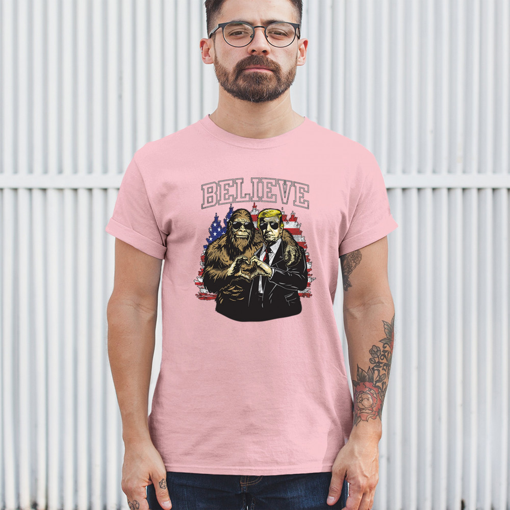 The "Believe" design combines patriotic pride and conservative values with a touch of fun. Featuring Donald J. Trump and a loyal Bigfoot against the American flag, this graphic is perfect for Trump supporters, Republicans, and believers in America First. Celebrate the Red Wave, the 47th President, and the unstoppable fight for victory. Ideal for anyone with unwavering belief in the people's mandate.