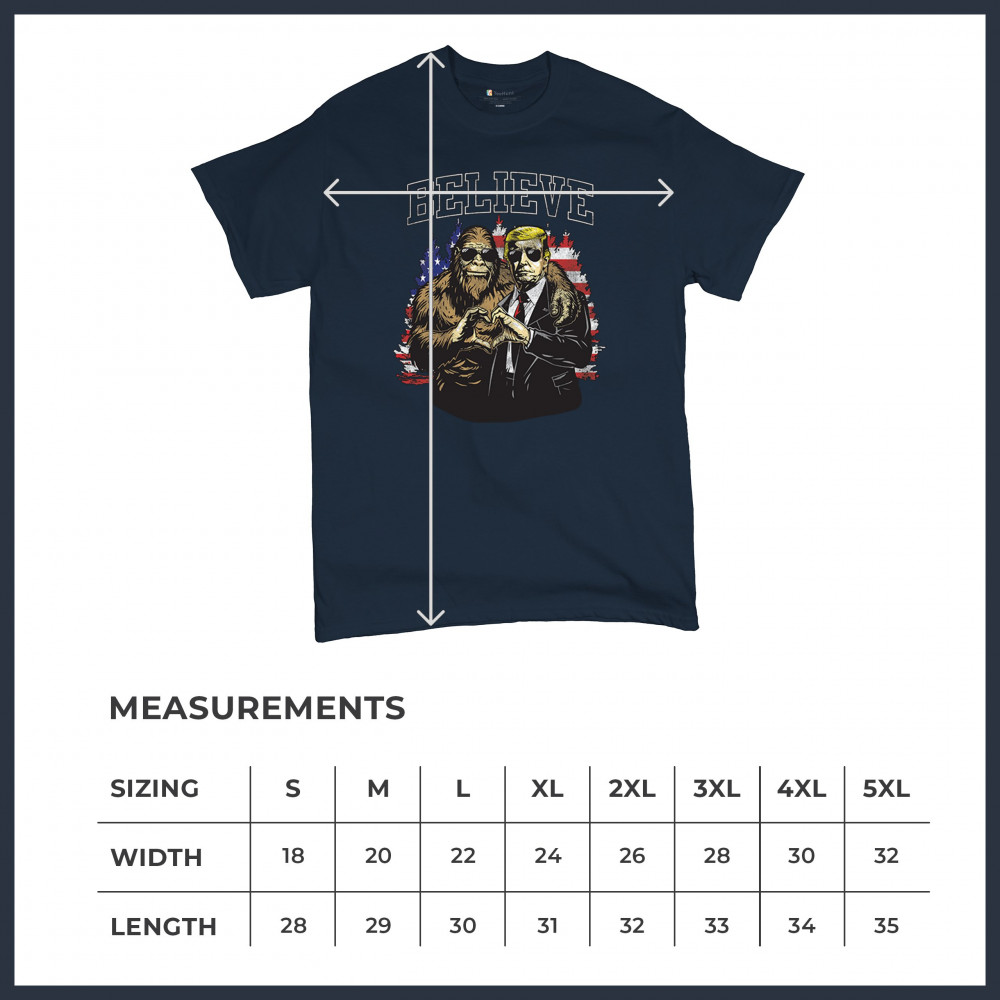 Show your belief with Trump and Bigfoot! Celebrate America First, the Red Wave, and conservative pride with this unique and patriotic design.