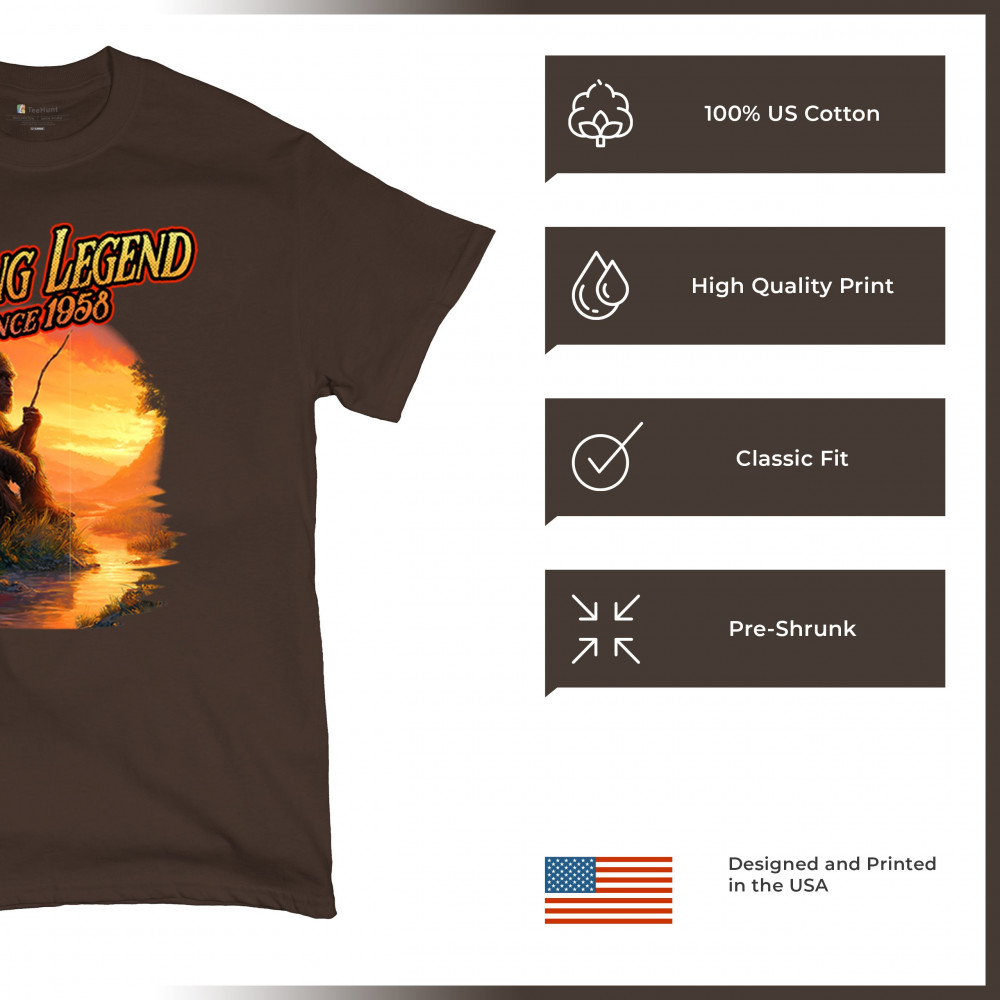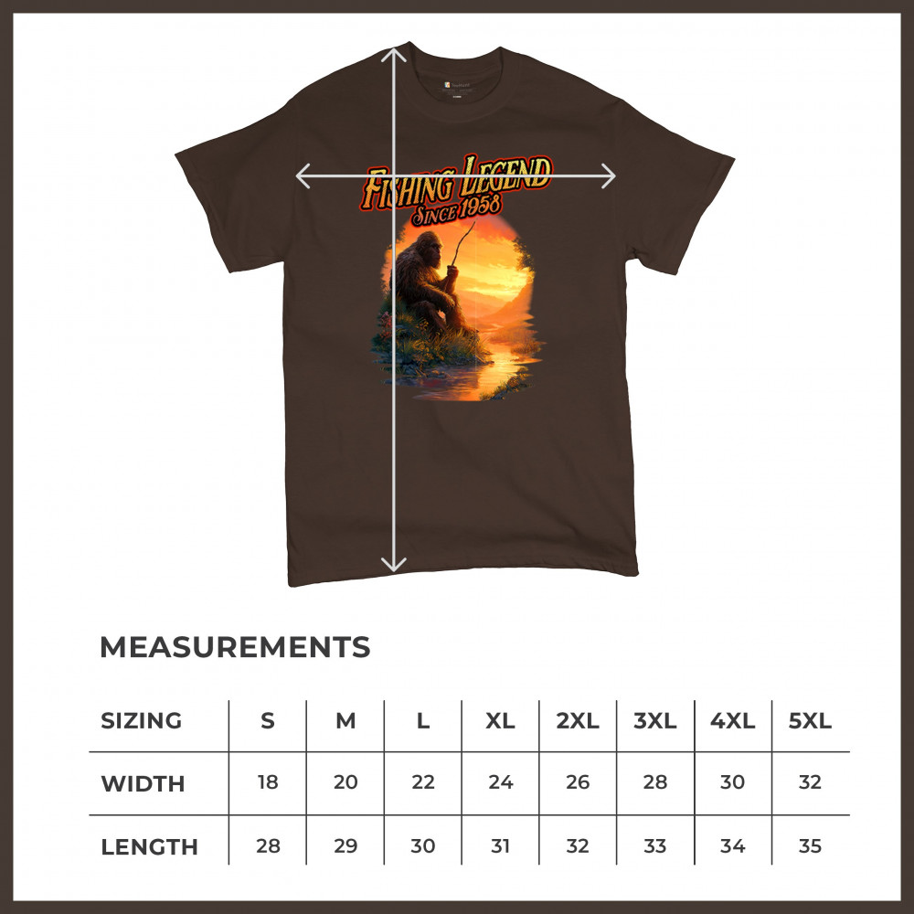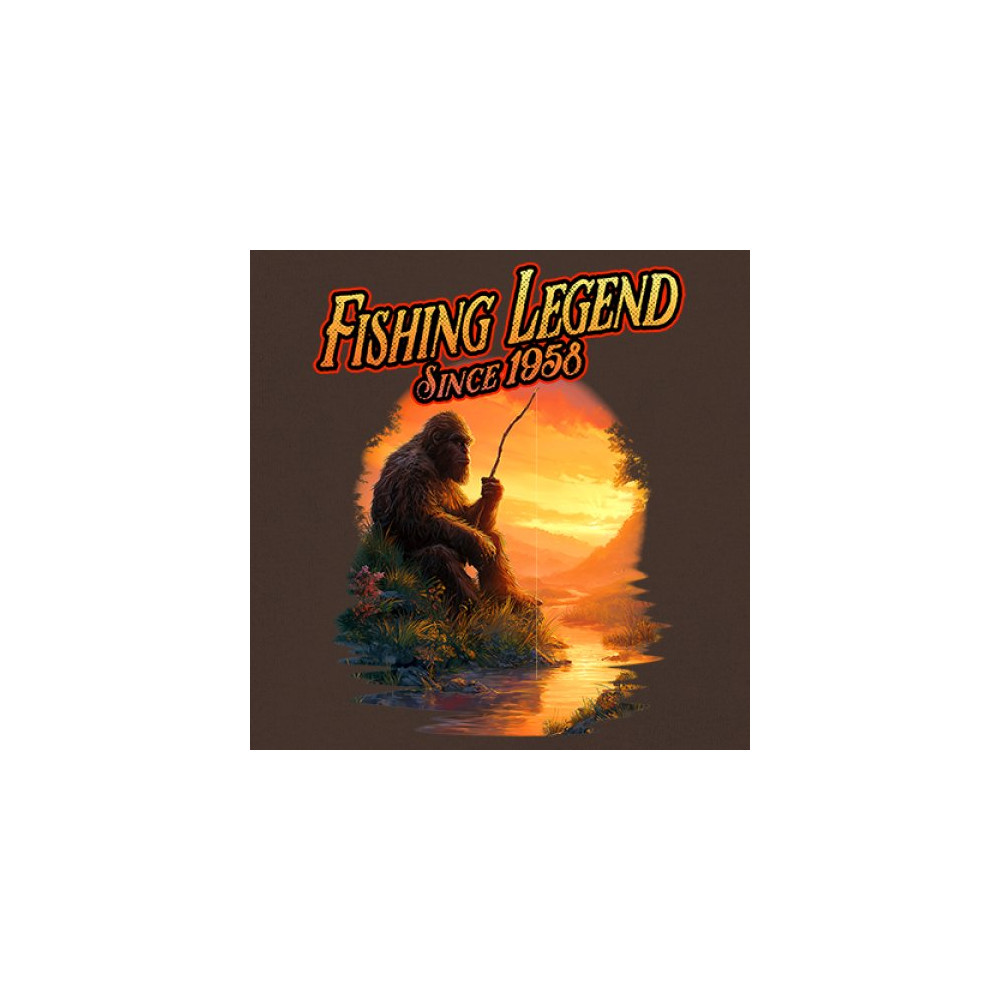 Bigfoot fishing legend design with Sasquatch lifestyle, retro vintage humor, funny wilderness shirt, Father’s Day gift, and campfire style.
