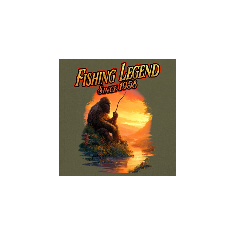 Bigfoot fishing legend design with Sasquatch lifestyle, retro vintage humor, funny wilderness shirt, Father’s Day gift, and campfire style.
