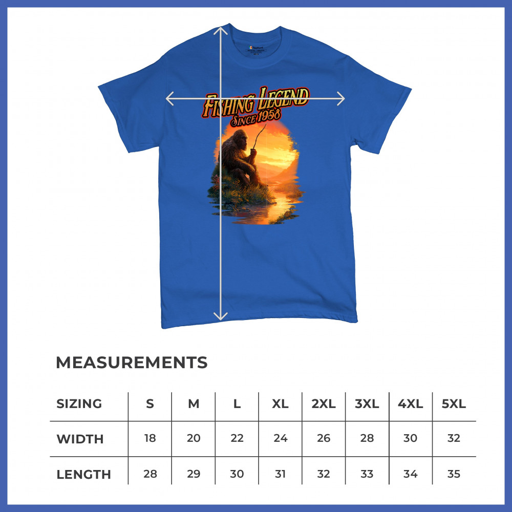 Bigfoot fishing legend design with Sasquatch lifestyle, retro vintage humor, funny wilderness shirt, Father’s Day gift, and campfire style.