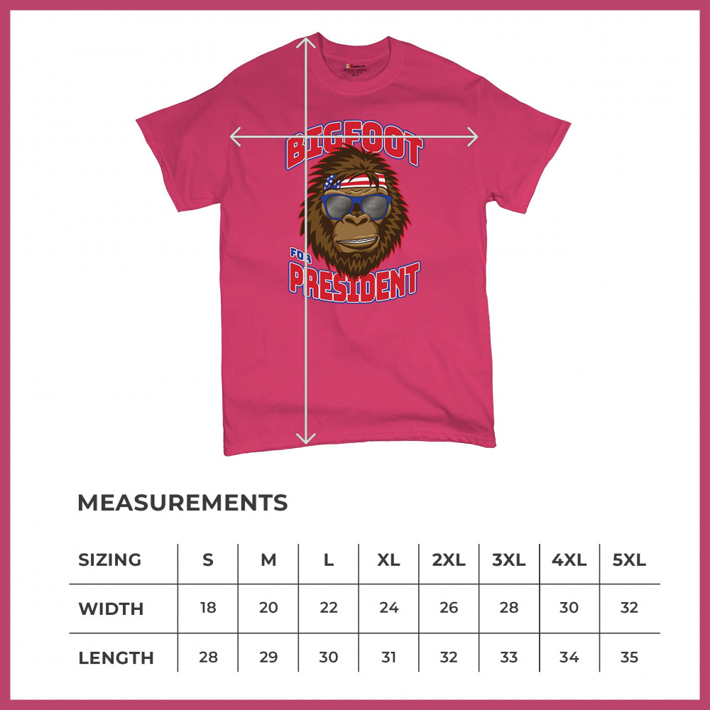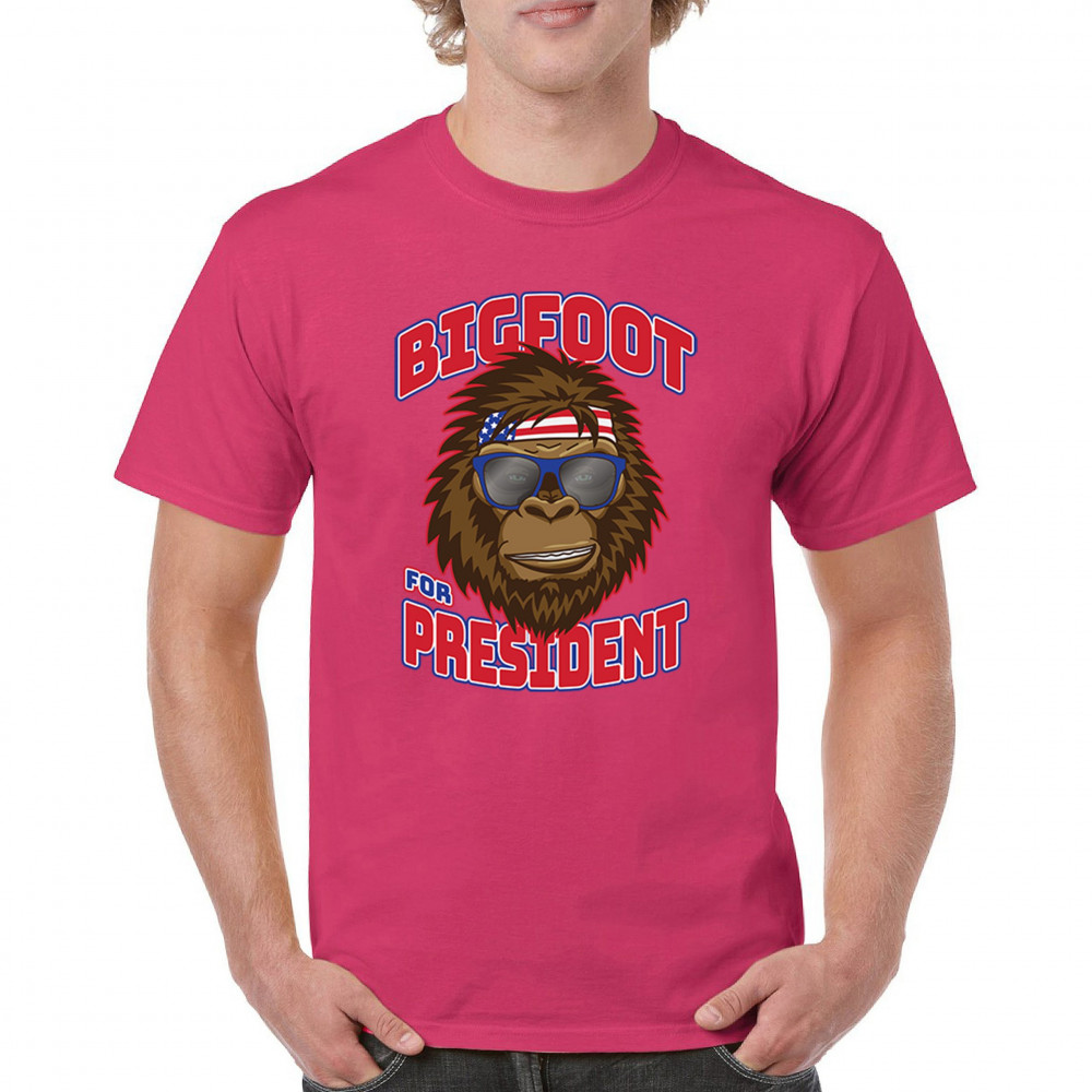Show off your quirky style with the "Bigfoot for President" design. Perfect for casual wear and parties, featuring Bigfoot in sunglasses and a patriotic bandana.