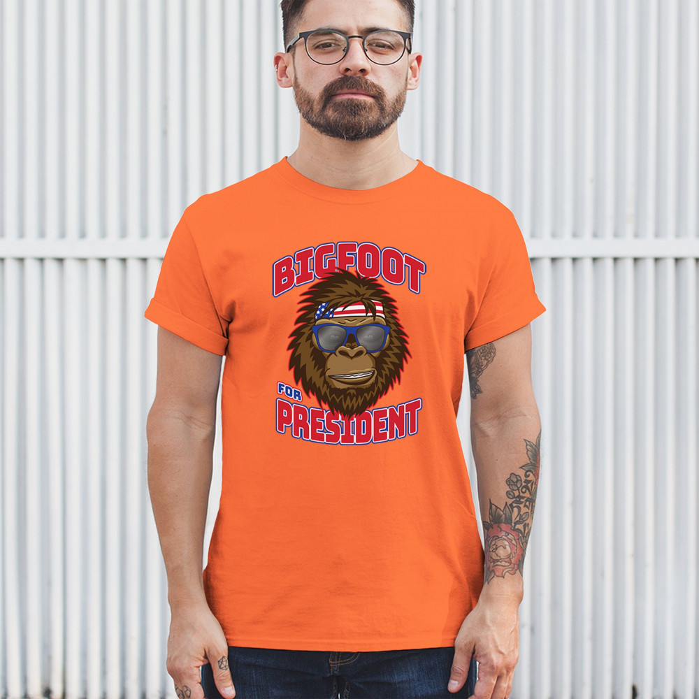 Show off your quirky style with the "Bigfoot for President" design. Perfect for casual wear and parties, featuring Bigfoot in sunglasses and a patriotic bandana.