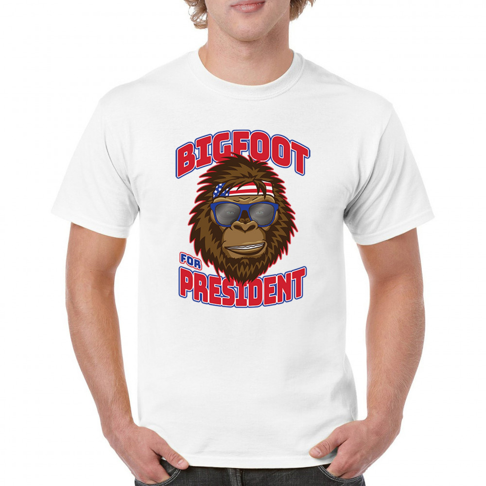 Show off your quirky style with the "Bigfoot for President" design. Perfect for casual wear and parties, featuring Bigfoot in sunglasses and a patriotic bandana.