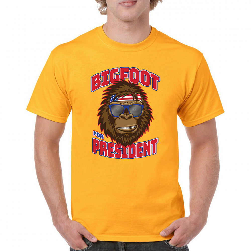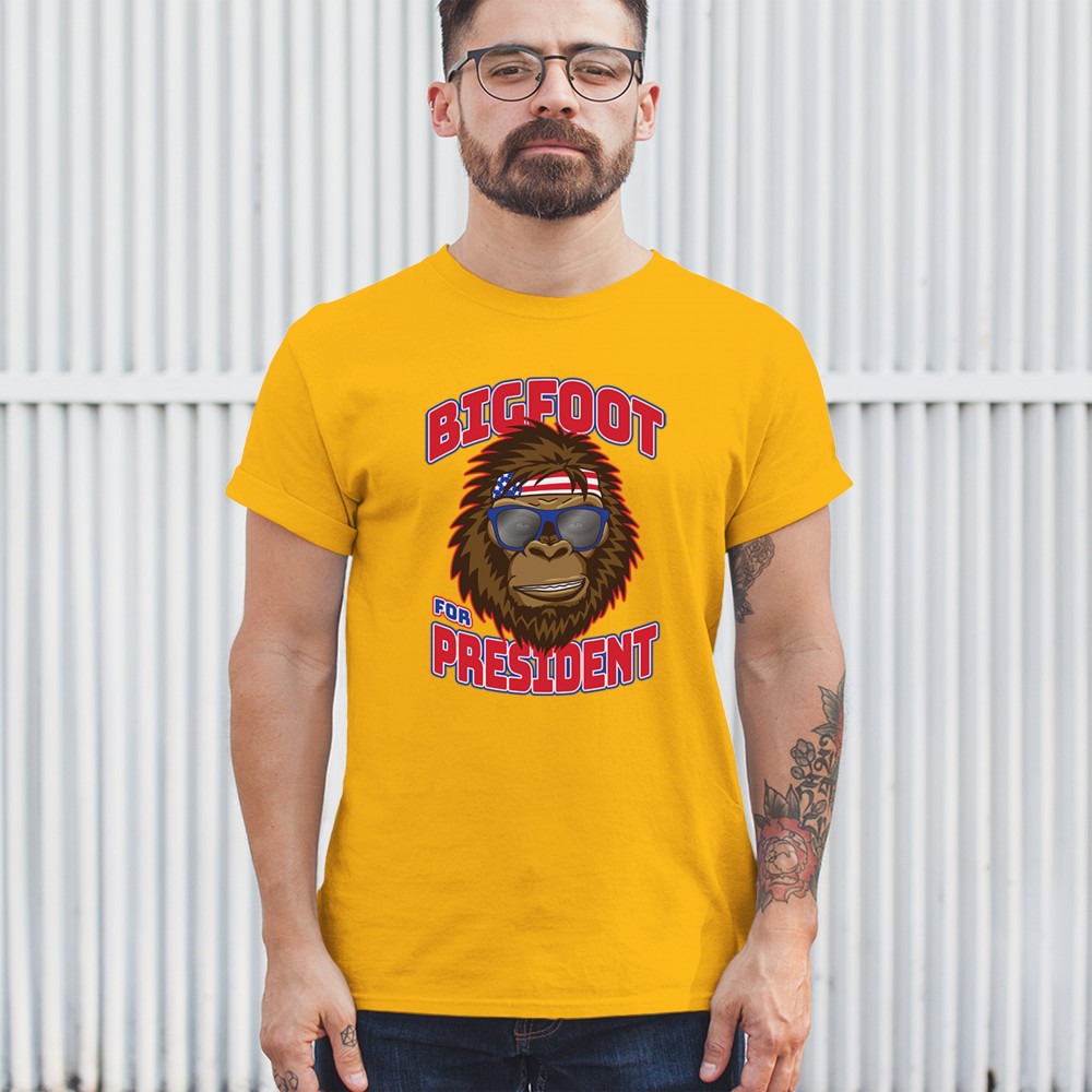 Show off your quirky style with the "Bigfoot for President" design. Perfect for casual wear and parties, featuring Bigfoot in sunglasses and a patriotic bandana.