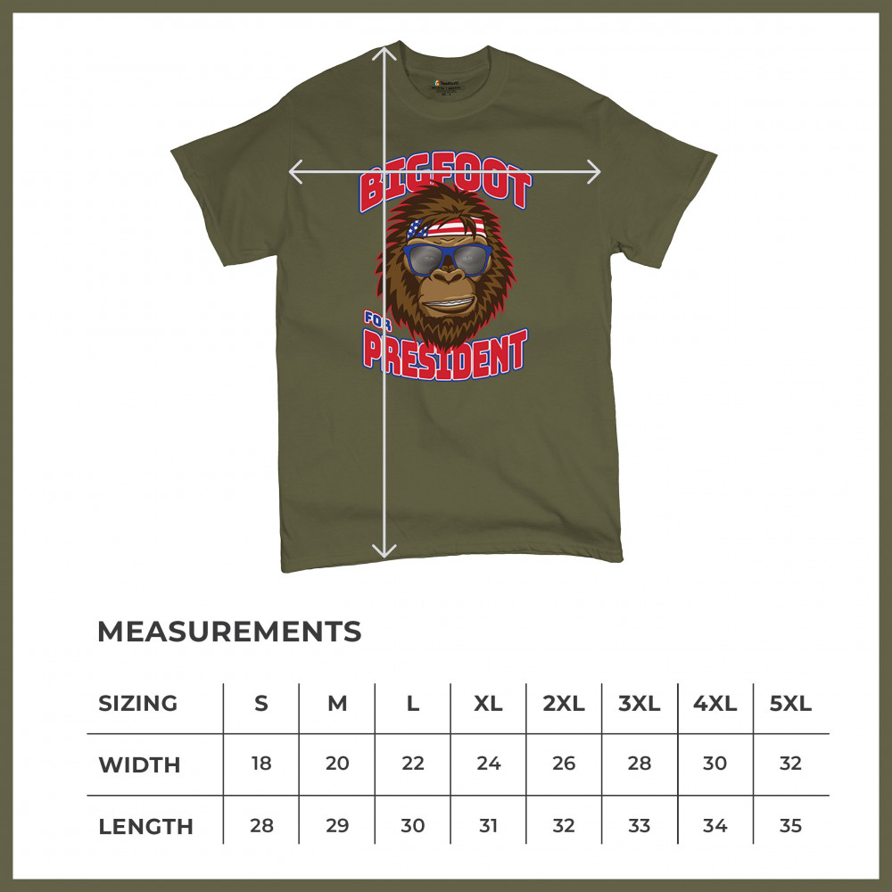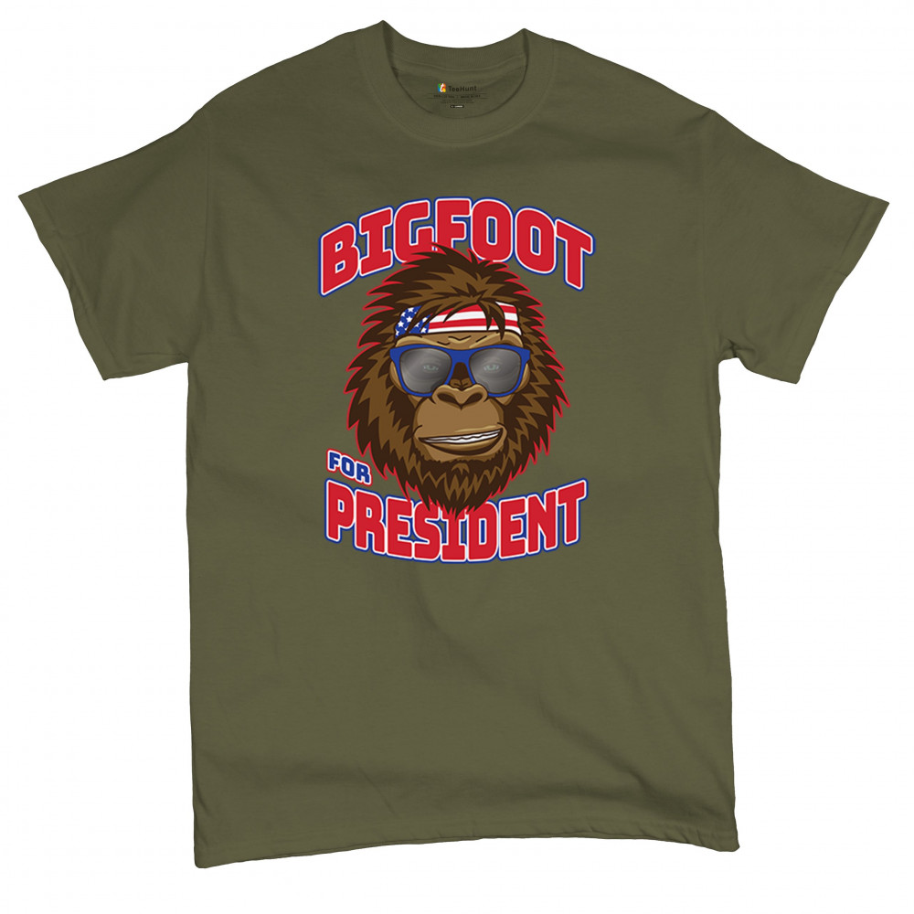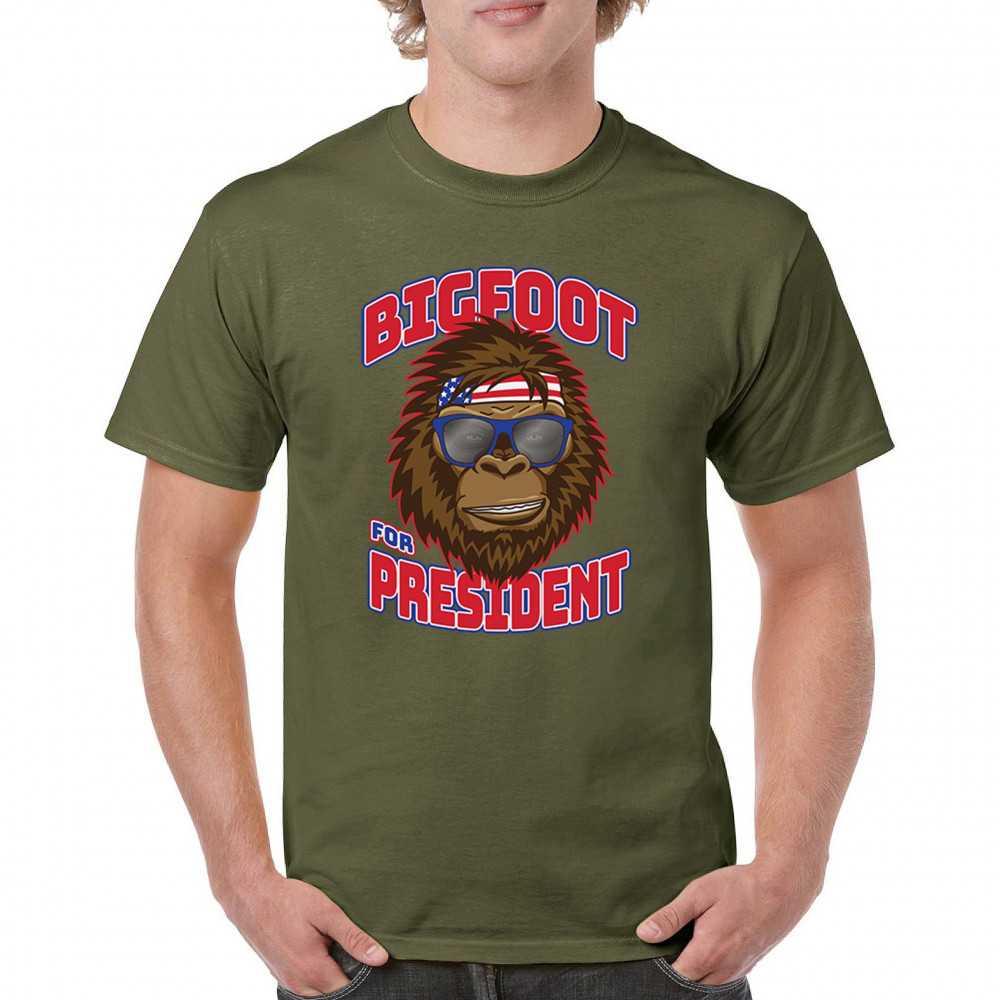 Show off your quirky style with the "Bigfoot for President" design. Perfect for casual wear and parties, featuring Bigfoot in sunglasses and a patriotic bandana.