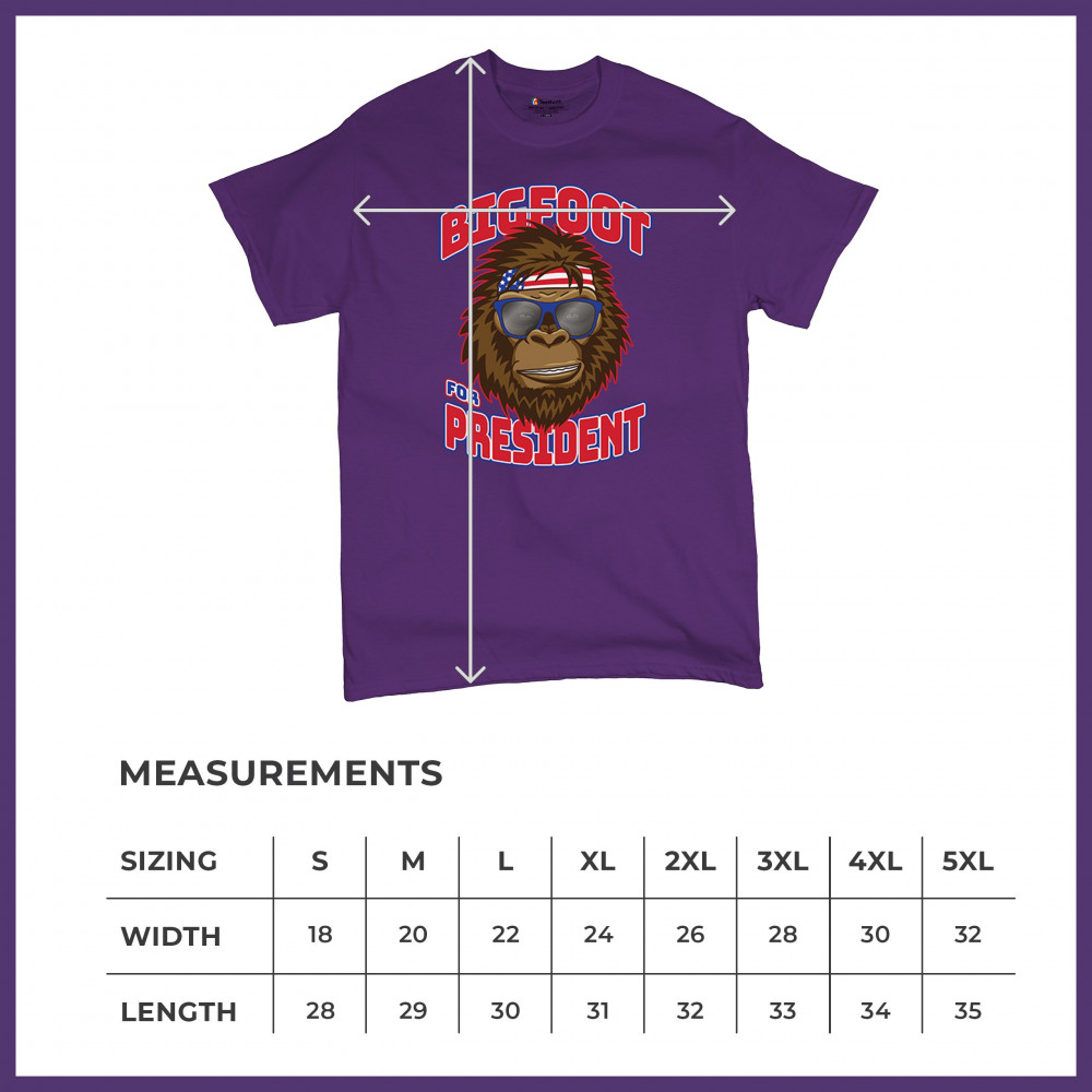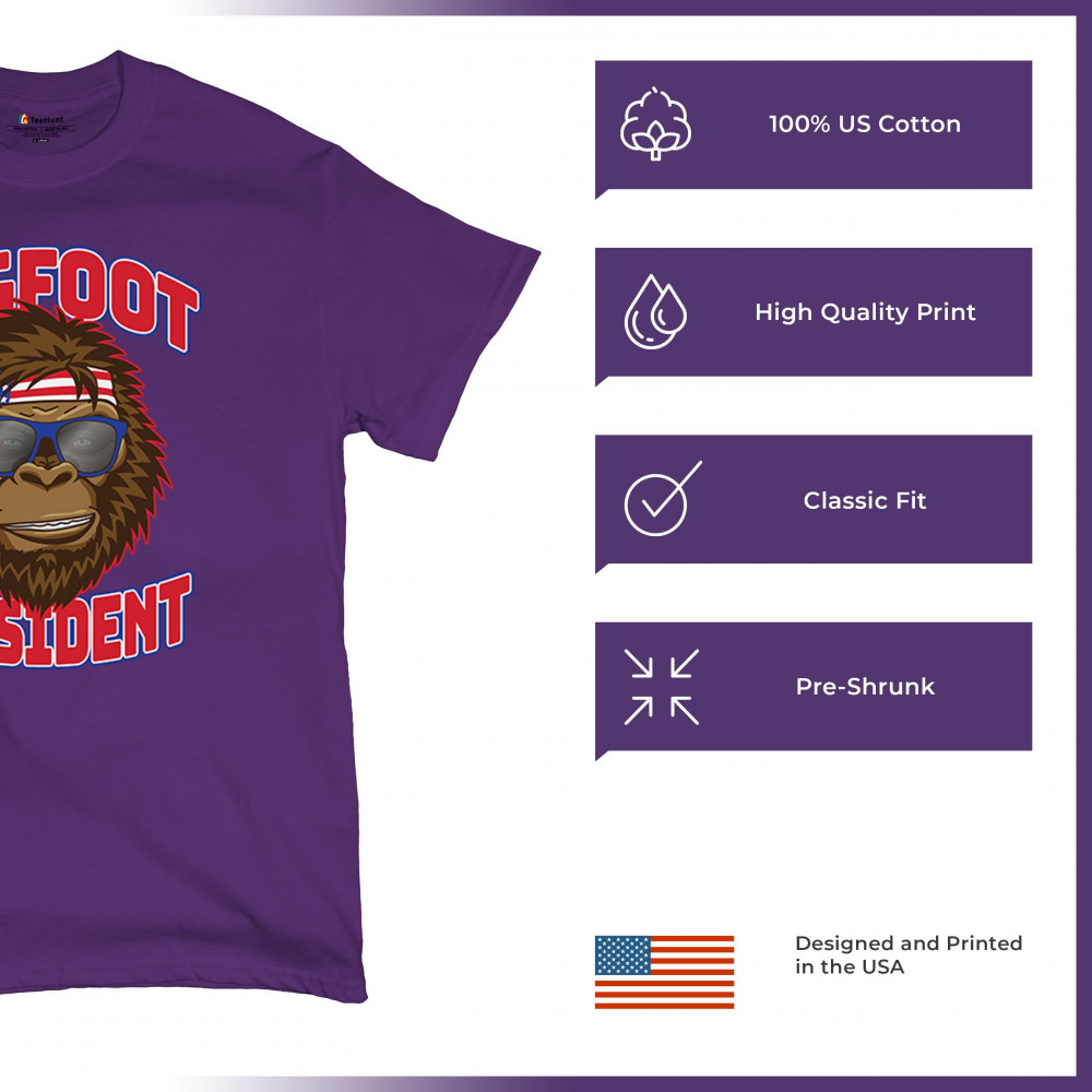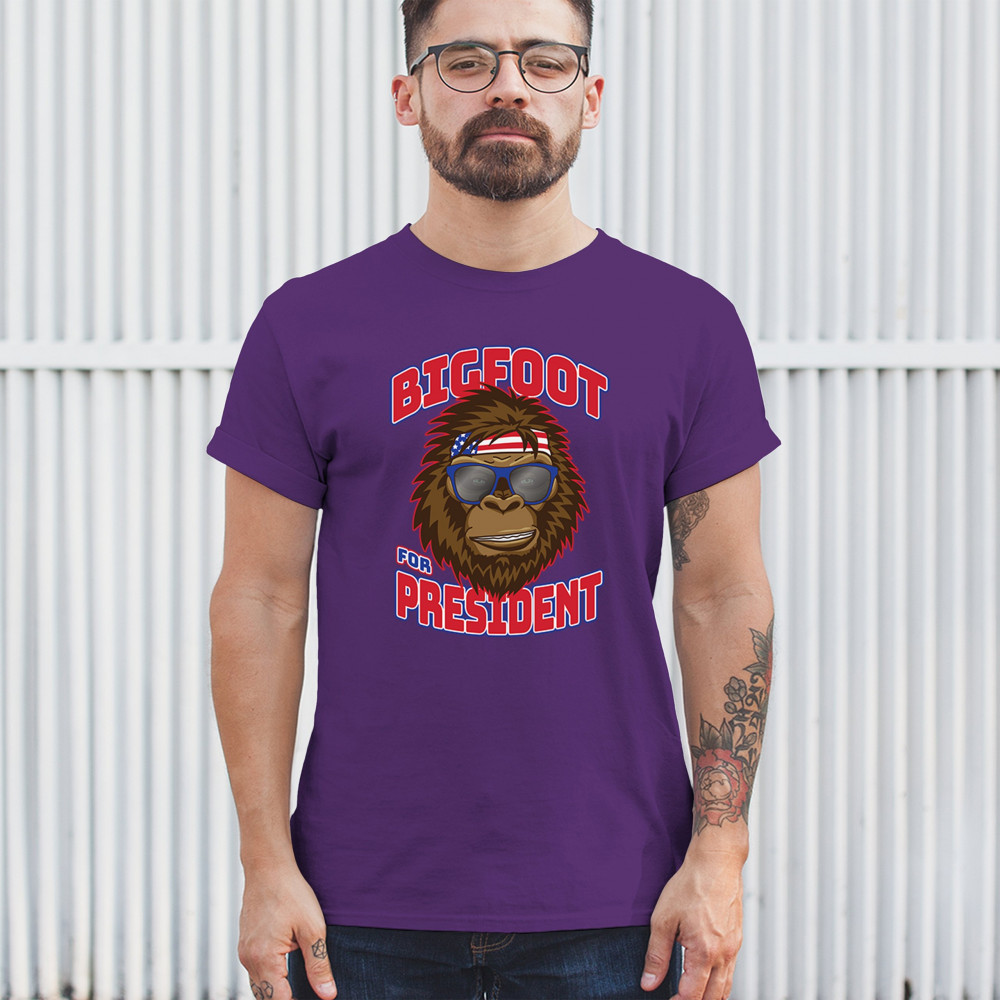 Show off your quirky style with the "Bigfoot for President" design. Perfect for casual wear and parties, featuring Bigfoot in sunglasses and a patriotic bandana.