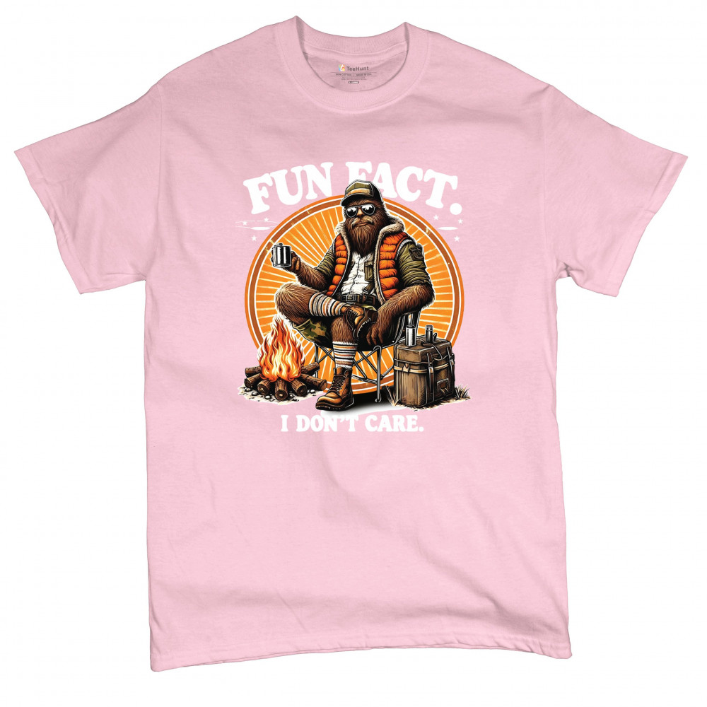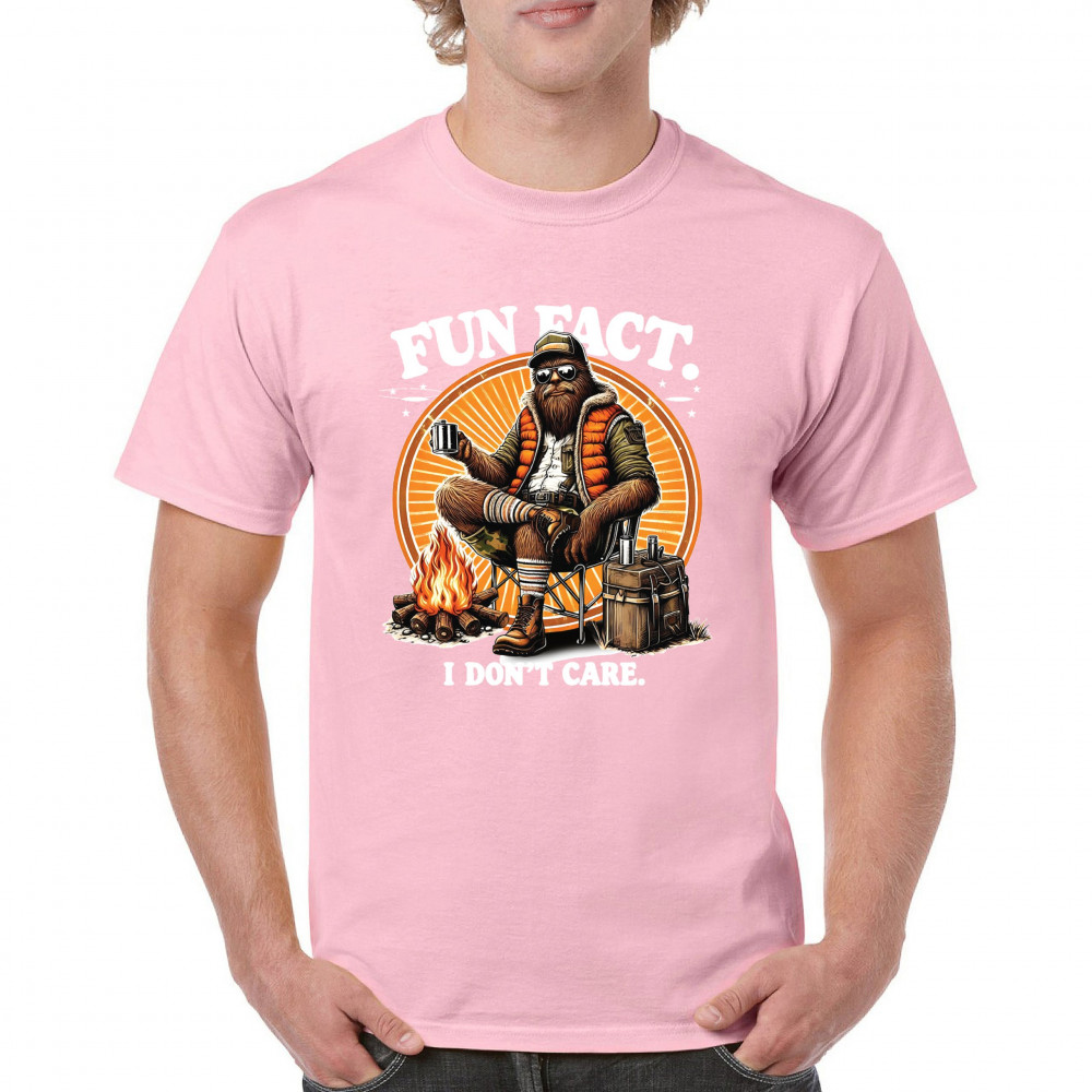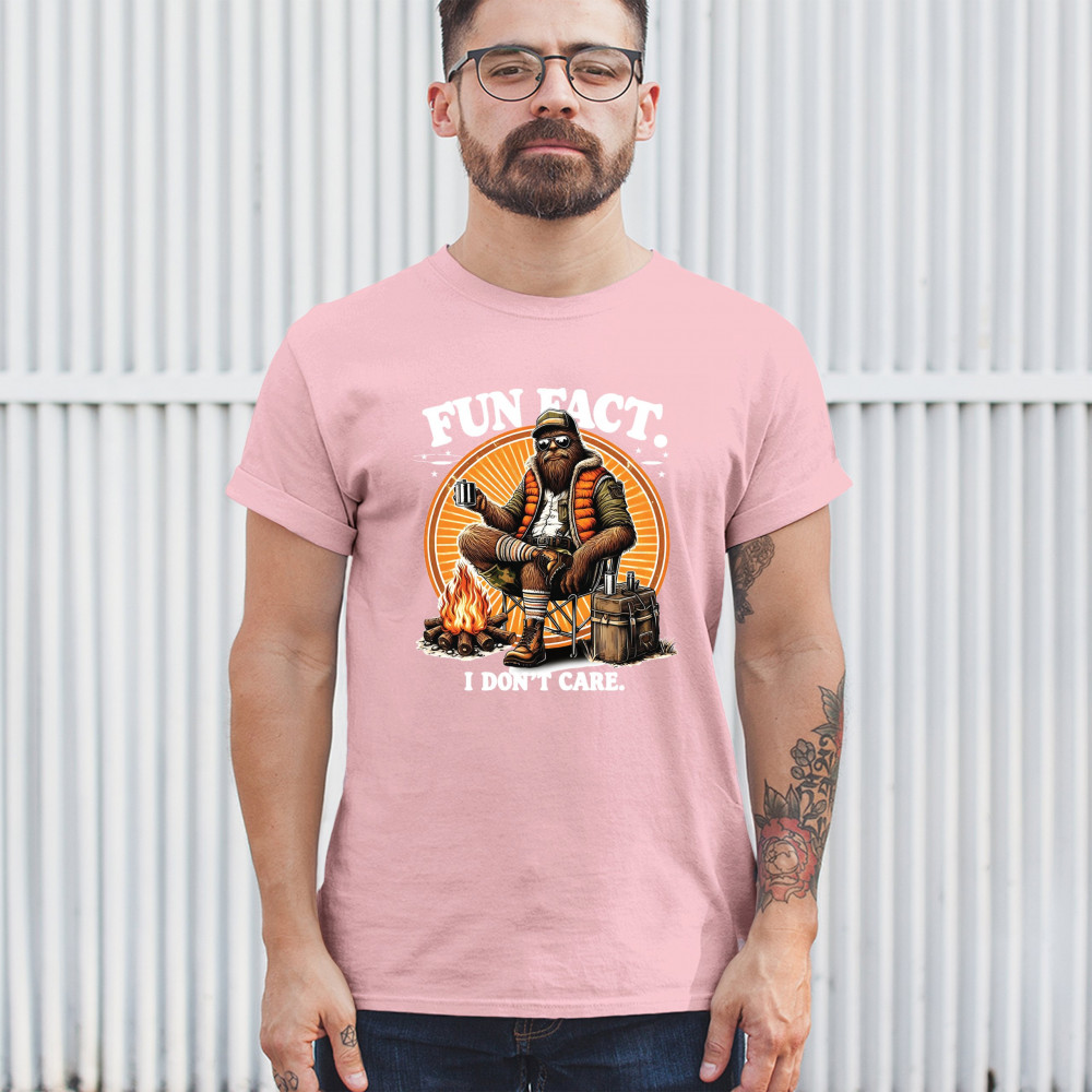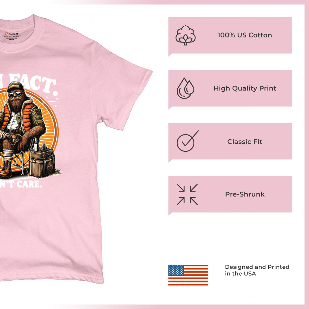 Funny Bigfoot Fun Fact design with cryptid humor, sarcastic outdoors shirt vibe, retro Sasquatch saying, USA pride, and camping adventure style.