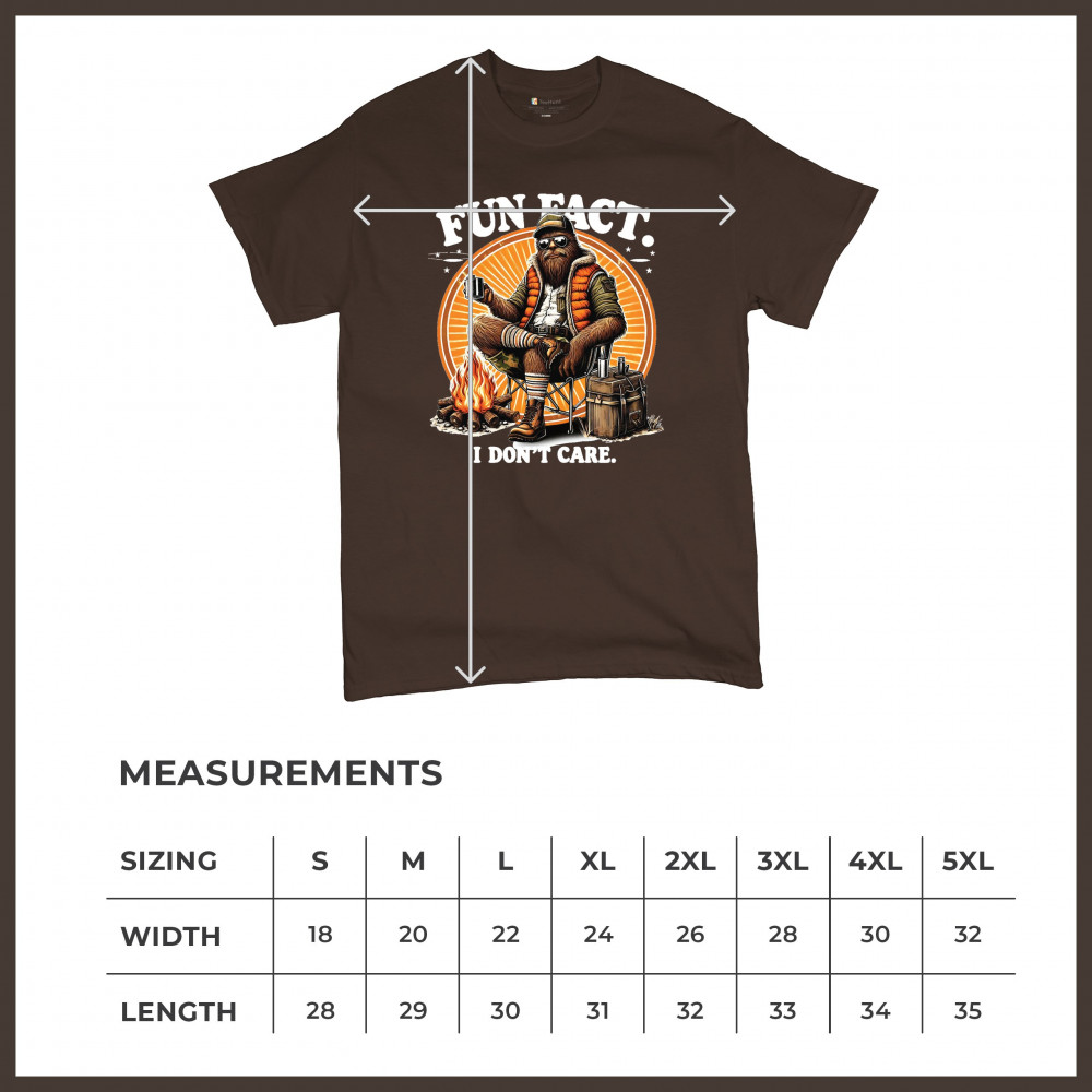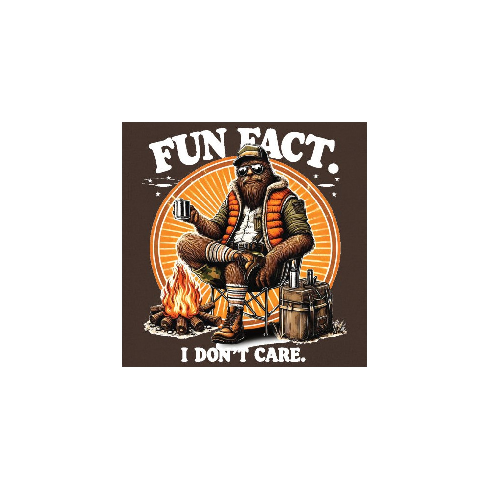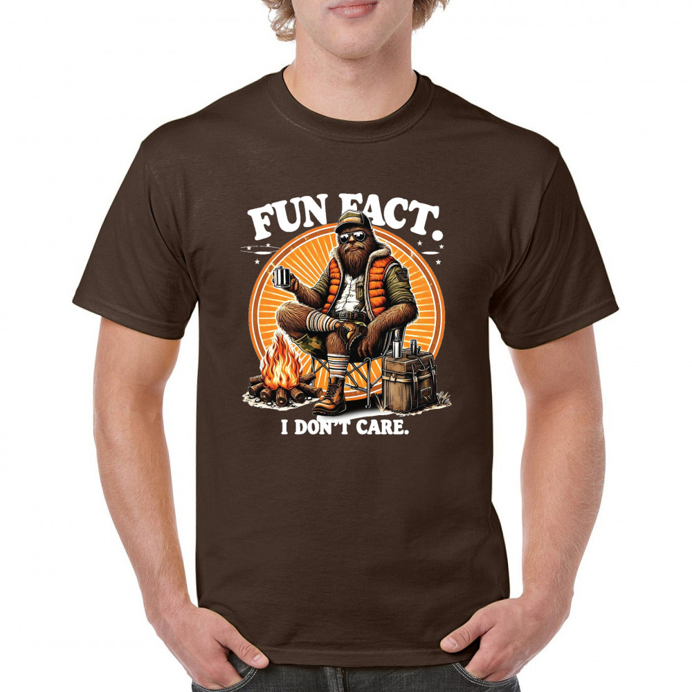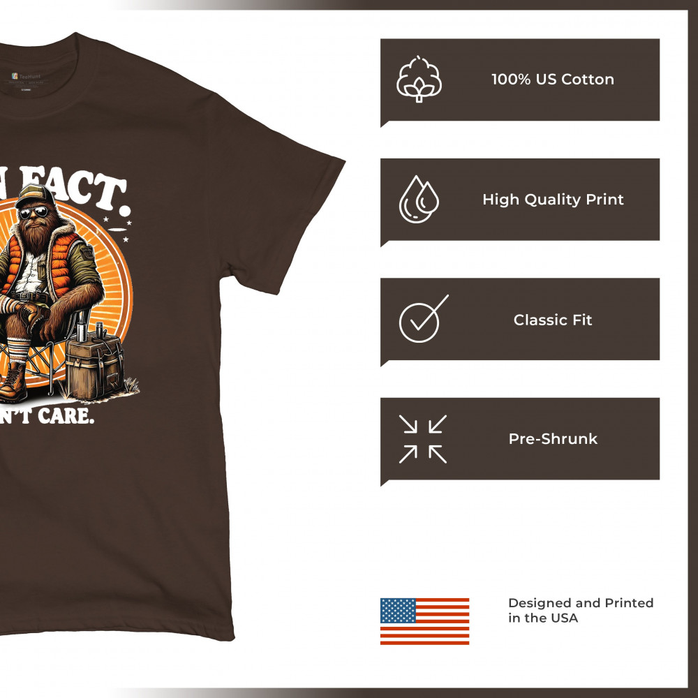 Funny Bigfoot Fun Fact design with cryptid humor, sarcastic outdoors shirt vibe, retro Sasquatch saying, USA pride, and camping adventure style.