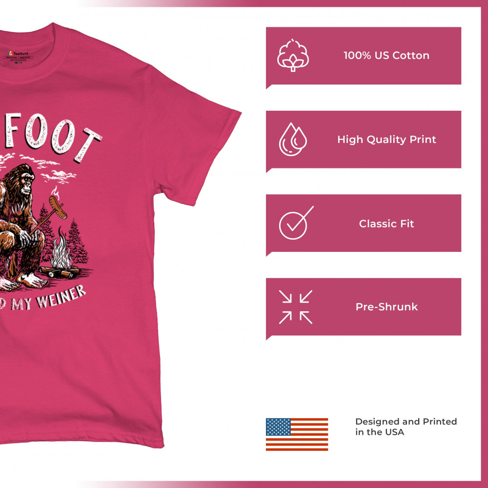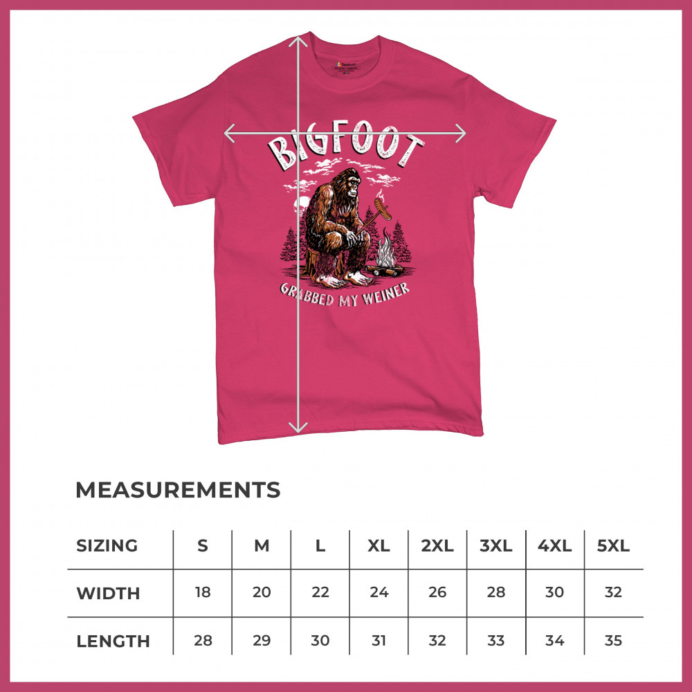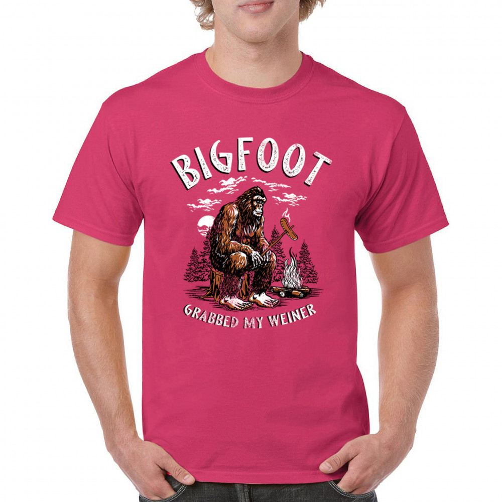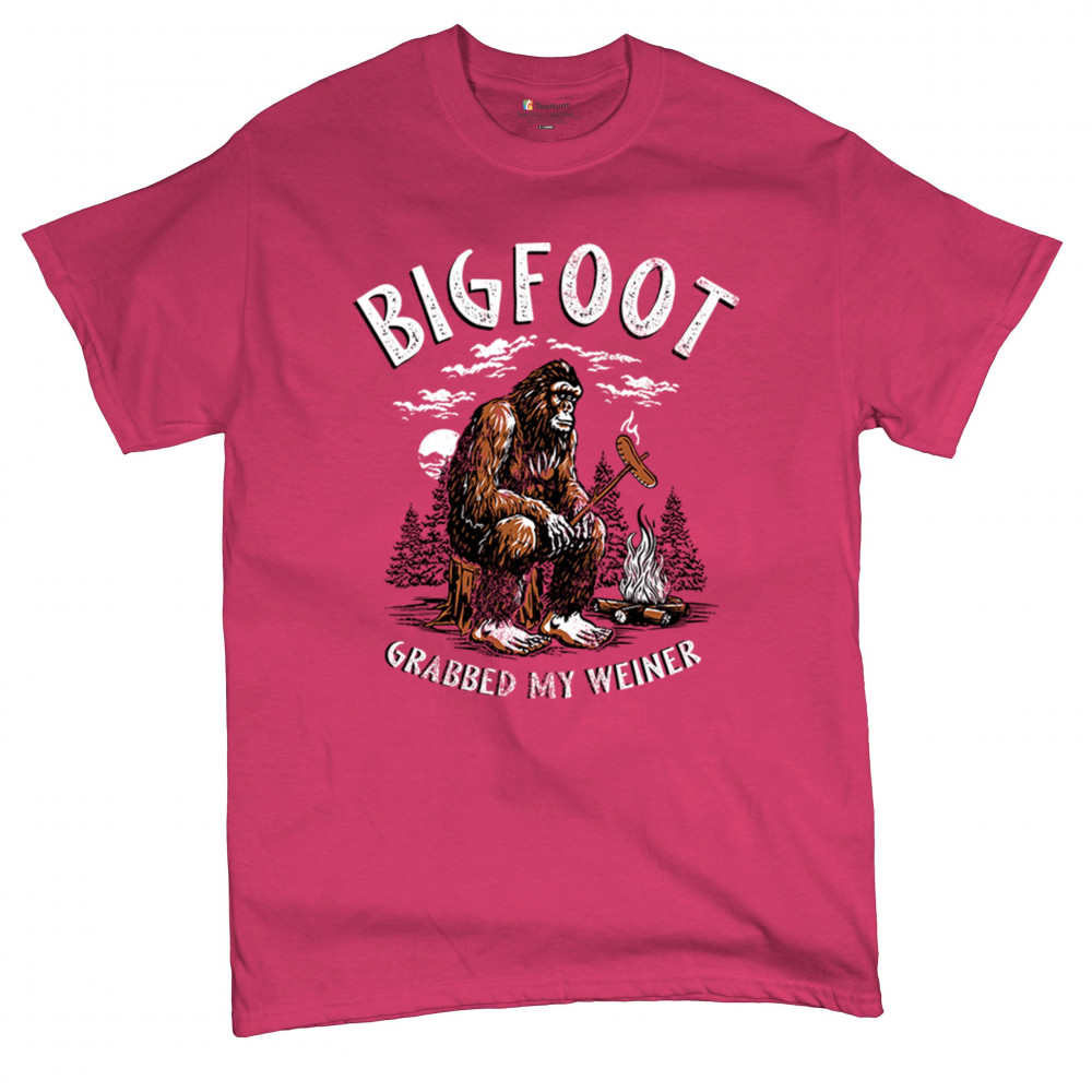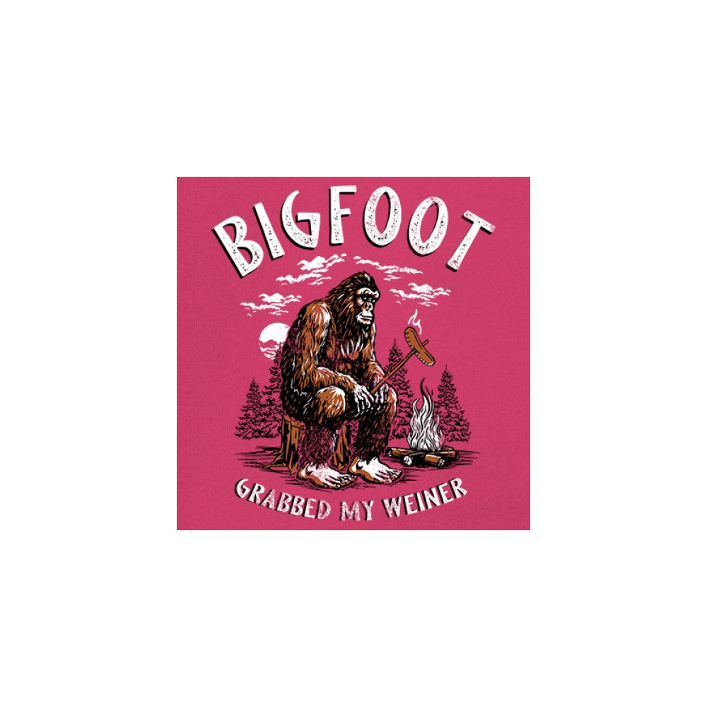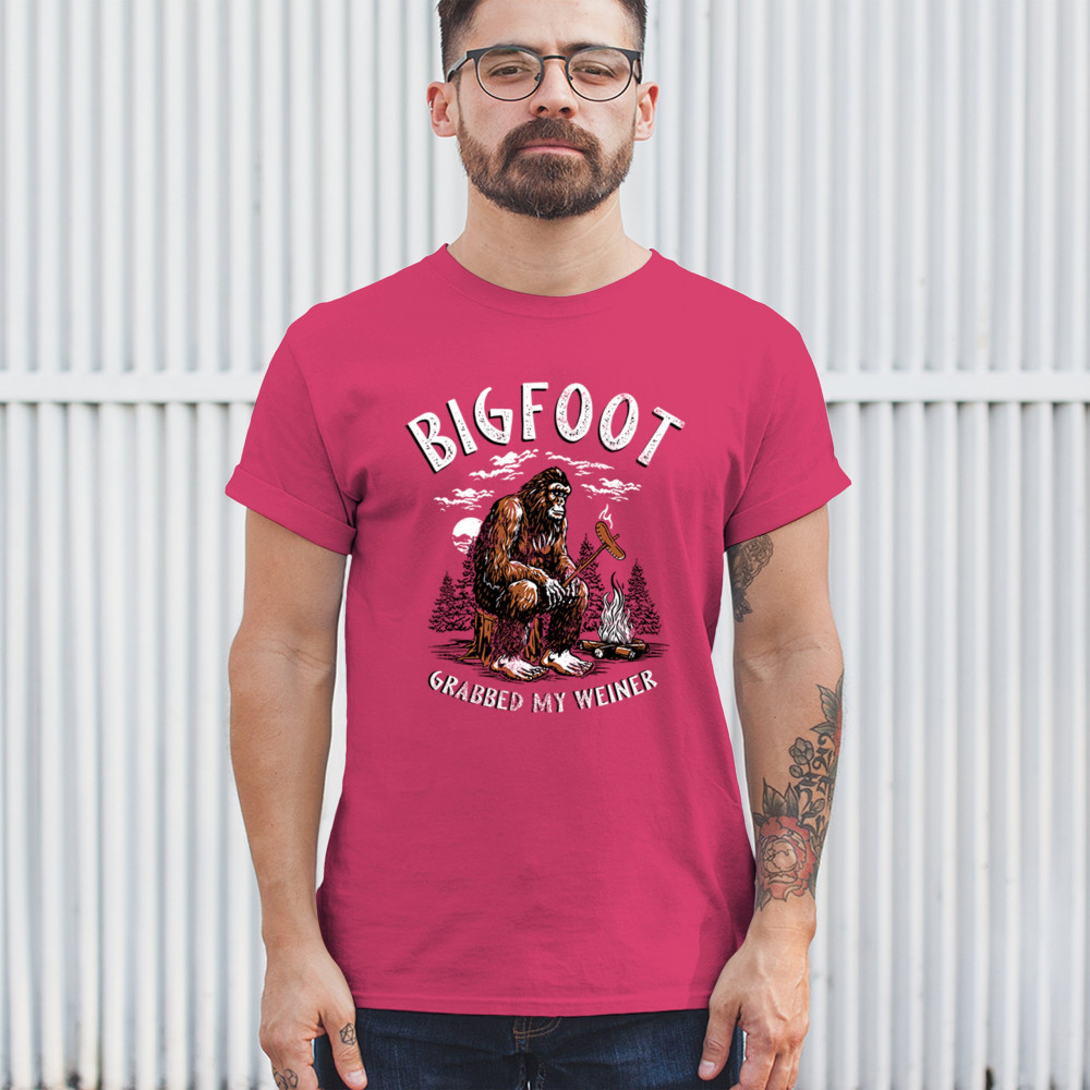 The Bigfoot Grabbed My Weiner design brings cheeky campfire humor to your outdoor adventures. Featuring a cartoon-style Sasquatch roasting a sausage by the fire, it’s perfect for cryptid lovers, campers, and jokesters. Ideal for BBQs, bonfires, forest festivals, and anyone who enjoys weiner jokes with their wilderness.