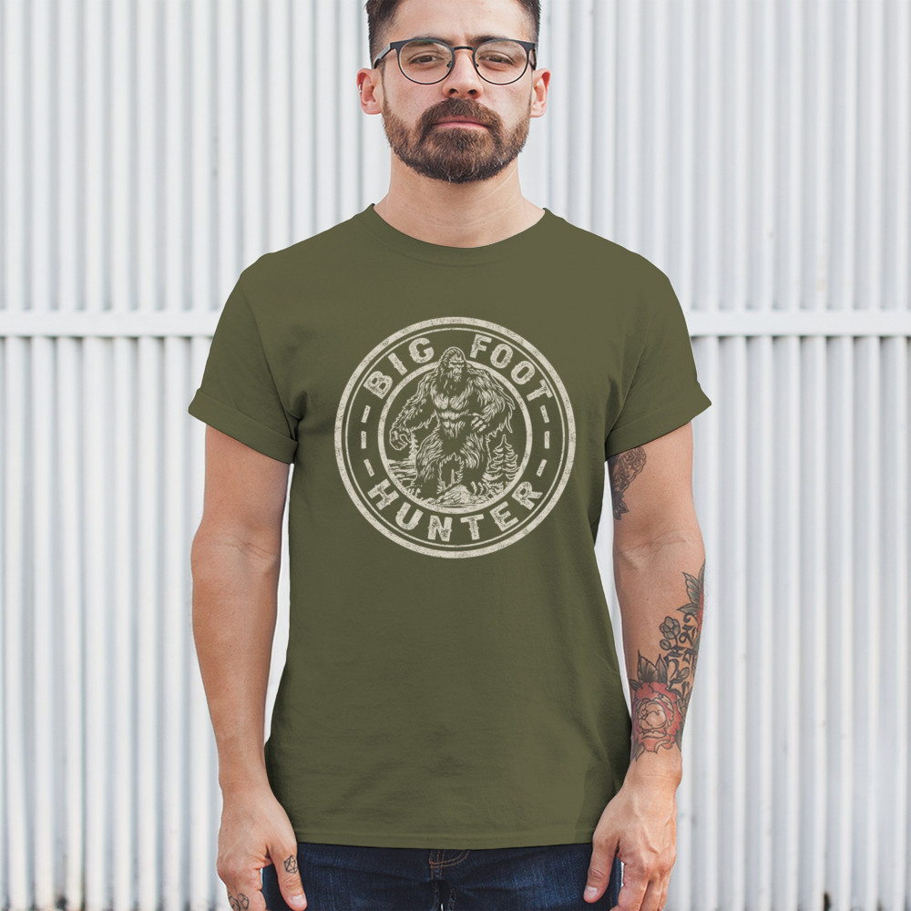 Capture the spirit of adventure with the "Bigfoot Hunter" design! Perfect for cryptid fans and outdoor enthusiasts, featuring a bold Sasquatch graphic.