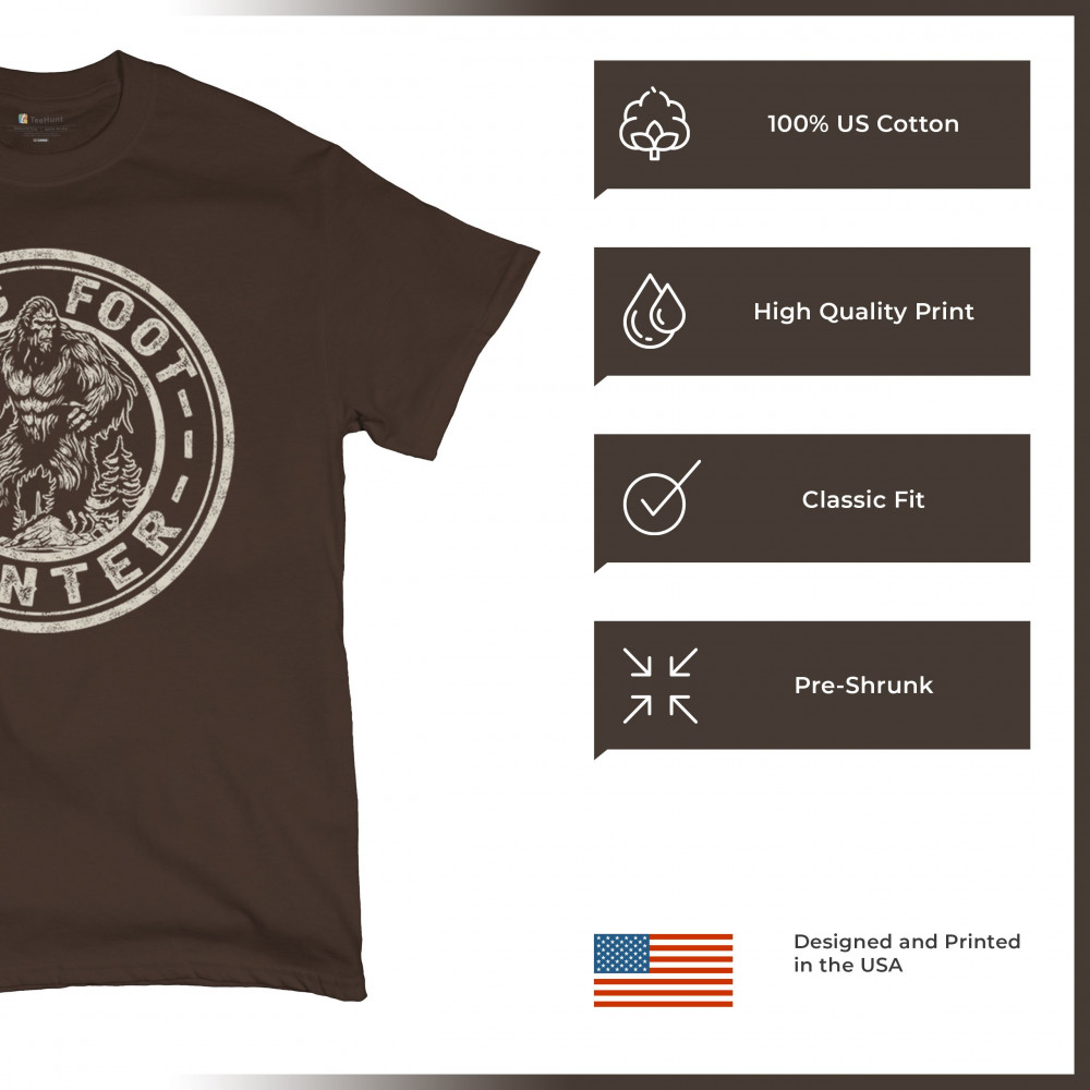 Capture the spirit of adventure with the "Bigfoot Hunter" design! Perfect for cryptid fans and outdoor enthusiasts, featuring a bold Sasquatch graphic.