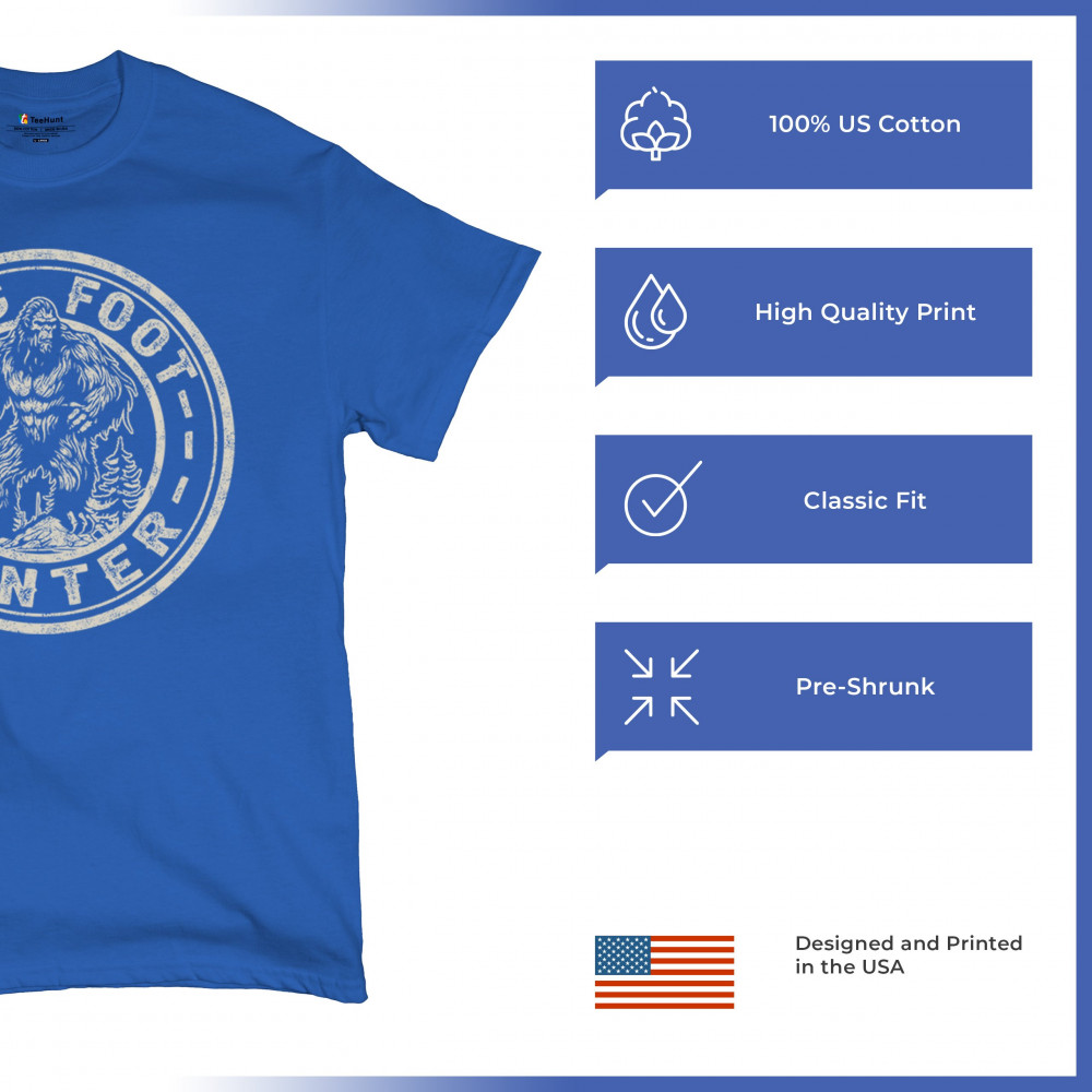 Embrace the mystery of the wilderness with the "Bigfoot Hunter" design! Perfect for cryptid enthusiasts, this graphic showcases a rugged Sasquatch emblem, blending outdoor exploration with mythical intrigue. Whether you're a hiker, camper, or simply a fan of Bigfoot lore, this design is a great way to express your adventurous side and love for legendary creatures.